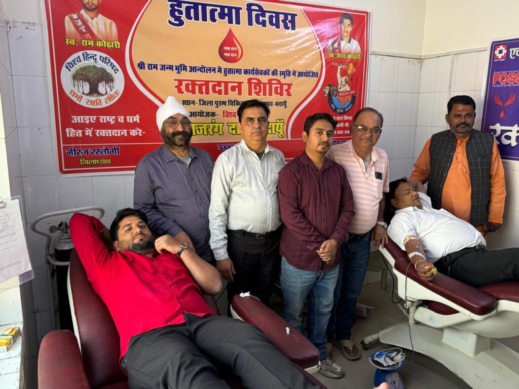 विश्व हिन्दू परिषद व बजरंग दल ने हुतात्मा दिवस पर जिला अस्पताल में रक्तदान शिविर लगाया
