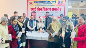 बदायूँ। अब्दुल्ला डिग्री कॉलेज परिसर में स्वामी विवेकानंद युवा सशक्तिकरण योजना के अंतर्गत समार्ट फ़ोन वितरण कार्यक्रम में जिलाध्यक्ष राजीव...