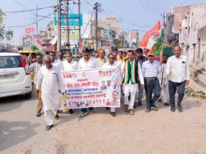 कांग्रेसियों ने वोट चोर गद्दी छोड़ हस्ताक्षर अभियान के तहत पैदल मार्च निकाला