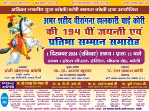 बरेली। अखिल भारतीय युवा कोली, कोरी समाज 1 दिसंबर को वीरांगना झलकारी बाई की 194 जयंती के उपलक्ष में प्रतिभा...