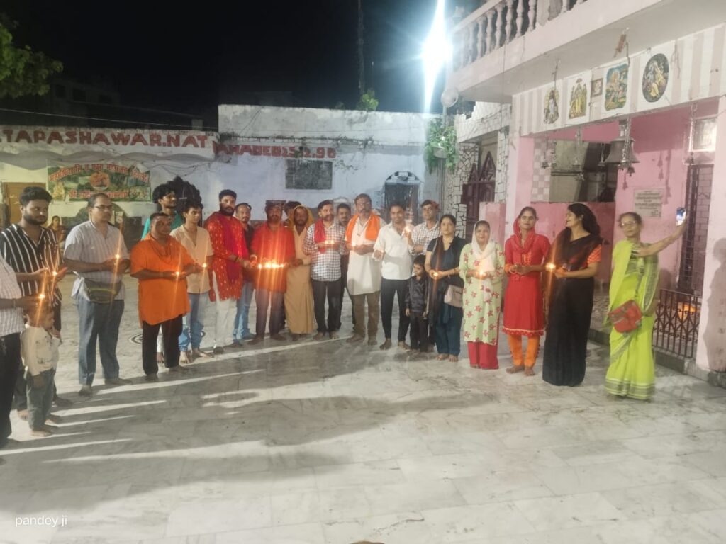 बरेली। आजाद हिंदू सेना बरेली की ओर से नाथनगरी बरेली में स्थित सप्तनाथ मंदिरों में महा आरती के आयोजन में दूसरी महा आरती सुभाष नगर स्थित तपेश्वर नाथ मंदिर में किया गया समस्त आजाद हिंदू सेना के कार्यकर्ता राष्ट्रीय अध्यक्ष अमित राठौर के नेतृत्व में तपेश्वर नाथ मंदिर परिसर में एकत्र हुए जहां सावन के महापर्व के शुभारंभ में सात नाथ मंदिरो में महा आरती के आयोजन के संबंध में दूसरी महा आरती का आयोजन तपेश्वर नाथ मंदिर में किया गया। महा आरती से पहले राष्ट्रीय अध्यक्ष अमित राठौर वह वहां उपस्थित कार्यकर्ता द्वारा महादेव के शिवलिंग को जल अभिषेक कर पूजा अर्चना की तत्पश्चात 201 दीपों को प्रचलित कर डमरू ढोल मजीरों के साथ पुष्प वर्षा कर हर हर महादेव,जय शंभू के जय घोष के साथ महा आरती की गई आरती के बाद महादेव को प्रसाद का भोग लगाकर मंदिर प्रांगण में उपस्थित समस्त कार्यकर्ता व वहा उपस्थित समस्त भक्तगणों में प्रसाद का वितरण किया गया। आरती में मुख्य रूप से आजाद हिंदू सेना के राष्ट्रीय अध्यक्ष अमित राठौर प्रदेश प्रभारी विनोद मिश्रा, प्रदेश मंत्री बाबा दीपक लहरी, जिला मीडिया प्रभारी जितेंद्र शर्मा, जिला सचिव प्रतीक सिंह, महानगर अध्यक्ष निवास यादव ,नगर अध्यक्ष अमित जोहरी, राकेश वाधवा आशीष गुप्ता, राहुल कश्यप,रजत पांडेय,लवनिस भटनागर,मिथुन चौधरी,आदित्य शर्मा, जुगनू श्रीवास्तव, धीरज श्रीवास्तव, महिला मोर्चा जिला उपाध्यक्ष मोना श्रीवास्तव, जिला महासचिव पलक श्रीवास्तव, शिवांगी श्रीवास्तव नीतू श्रीवास्तव आदि सैकड़ो आजाद हिन्दू सैनिक उपस्थित रहे।