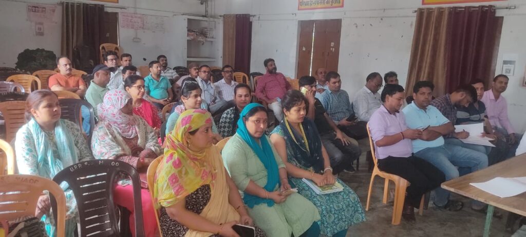 ऑनलाइन हाजिरी भी किसी अन्य विभाग की बजाय शिक्षकों पर पहले लागू करना शिक्षकों की कर्तव्यनिष्ठा पर प्रश्न चिन्ह क्यों लगाया जा रहा है? संगठन के जिला अध्यक्ष संजीव शर्मा ने बताया कि 11 जुलाई को समस्त विकास क्षेत्र में ब्लॉक स्तरीय पदाधिकारी द्वारा संबंधित ब्लाक के समस्त शिक्षकों, शिक्षामित्र एवं अनुदेशकों, शैक्षिक संवर्ग के लोगों को को अपराह्न 2:00 बजे बुलाया जाएगा एवं उनसे ऑनलाइन उपस्थिति पर सहमति या असहमति ली जाएगी। यदि शिक्षकों द्वारा ऑनलाइन हाजिरी के प्रति असहमति का प्रतिशत अधिक होगा तो शिक्षकों की लड़ाई उत्तर प्रदेशीय प्राथमिक शिक्षक संघ के बैनर तले लड़ी जाएगी। इसके संदर्भ में प्रांतीय नेतृत्व द्वारा चरणबद्ध योजना तैयार कर ली गई है। विकास क्षेत्र से असहमति का प्रस्ताव आने पर 14 जुलाई को जनपद के समस्त विकास शेत्रों के पदाधिकारी जिला कार्यकारिणी सदस्यों की बैठक कर 15 तारीख को ऑनलाइन उपस्थिति के विरोध में माननीय मुख्यमंत्री उत्तर प्रदेश सरकार को संबोधित ज्ञापन जिला बेसिक शिक्षा अधिकारी को सौपा जाएगा। यदि दी गई समय सीमा में भी समस्याओं का निराकरण नहीं होता तो आगामी 23 जुलाई को जनपद के समस्त शिक्षक जिला बेसिक शिक्षा अधिकारी कार्यालय पर शांतिपूर्ण धरना प्रदर्शन करेंगे। बैठक में ब्लॉक वरिष्ठ उपाध्यक्ष पंकज पाठक, कोषाध्यक्ष अरुण सक्सेना, तहसील प्रभारी प्रीति राठौड़, श्वेता आर्य, कुसुम रानी, कामिनी, अमित यादव, त्रिभुवन राठौर, सुरजीत सिंह, नदीम, युधिष्ठिर सुमन, आयुष भारद्वाज, सुभाष चंद्र, वैभव श्रोत्रिय, अनिल कुमार आदि पदाधिकारी मौजूद रहे।