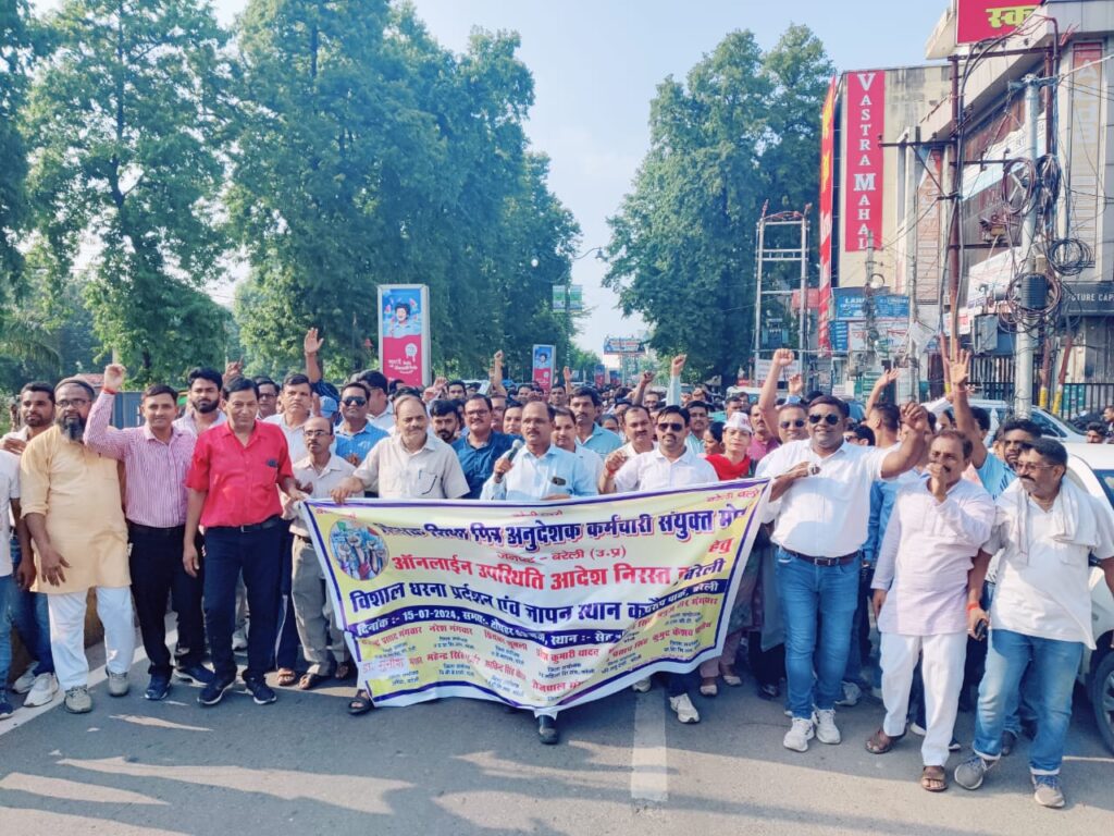 बरेली । शिक्षक शिक्षा मित्र अनुदेशक कर्मचारी संयुक्त मोर्चा के नेतृत्व में आज जूनियर शिक्षक संघ के जिला अध्यक्ष राजेंद्र गंगवार के नेतृत्व में आज सभी संगठनों ने मुख्यमंत्री के नाम जिलाधिकारी को ज्ञापन सोपा जिसमें शिक्षकों की आए दिन समस्याओं को बताते हुए शिक्षकों ने ऑनलाइन उपस्थिति को तत्काल प्रभाव से निरस्त करने पर सदैव शिक्षकों को अन्य कर्मचारियों की भांति 30 अर्जित अवकाश 15 हफ्ते अवकाश और विभागीय कार्य हेतु बुलाने पर प्रीत कर अवकाश प्रदान किए जाने के साथ-साथ शिक्षक विवाह 13 दिवसीय संस्कार इत्यादि अवकाश की मांग की पुरानी पेंशन बहाल करते हुए वर्षों से लंबित पदोन्नति प्रक्रिया पूर्ण करने की मांग की अगली मांग में शिक्षामित्र अनुदेशकों के लिए जो वर्षों से अल्प मध्य पर विभाग को पूर्णकालिक सेवाएं दे रहे हैं उन्हें नियमित किया जाए और समान कार्य समान वेतन के आधार पर मानदेय निर्धारित करने की बात कही साथ में आरटीई 2009 व राष्ट्रीय शिक्षा नीति 2020 के आलोक में परिषदीय शिक्षकों को समस्त गैर शिक्षक कार्यों से तत्काल मुक्त किया जाए इस मौके पर नरेश गंगवार क पटेल भानु प्रताप सिंह प्रवेश कुमार यादव अनुज वीर गंगवार मनीष गंगवार योगेश शर्मा अरविंद चौहान तेजपाल गंगवार भानु प्रताप कुमुद केशव पांडे कपिल यादव के पी सिंह परीक्षित गंगवार सत्येंद्र पाल सिंह सुंदरलाल सागर शिखा अग्रवाल प्रियंका भास्कर कल चौधरी ममता सिंह राजेश कुमार सिंह इत्यादि सैकड़ो शिक्षक शिक्षा मित्र अनुदेशक कर्मचारी मौजूद रहे।
