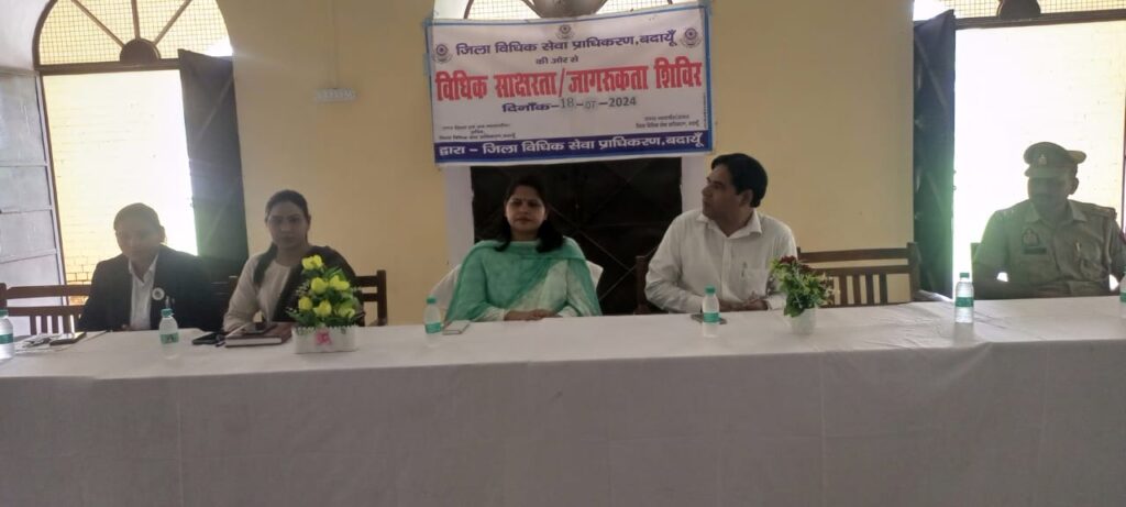 बदायूँ। उ०प्र० राज्य विधिक सेवा प्राधिकरण, लखनऊ के निर्देशानुक्रम में जनपद न्यायाधीश/अध्यक्ष, जिला विधिक सेवा प्राधिकरण, बदायूं के निर्देशानुपालन में 18 जुलाई 2024 गुरुवार को जिला विधिक सेवा प्राधिकरण बदायूं द्वारा शिक्षा का अधिकार एवं उपभोक्ता फोरम से सम्बन्धित विधिक साक्षरता/ जागरूकता शिविर का आयोजन पी०एम० श्री राजकीय इण्टर कॉलेज जनपद बदायूं में किया गया। शिविर का शुभारम्भ अपर जिला एवं सत्र न्यायाधीश/सचिव, जिला विधिक सेवा प्राधिकरण बदायूं शिव कुमारी की अध्यक्षता में किया गया। उनके द्वारा बताया गया कि जिला विधिक सेवा प्राधिकरण, बदायूं में स्थापित लीगल एड क्लीनिक में अपनी समस्याओं के निराकरण हेतु निःशुल्क विधिक सहायता के सम्बंध में आवेदन कर सकते है।