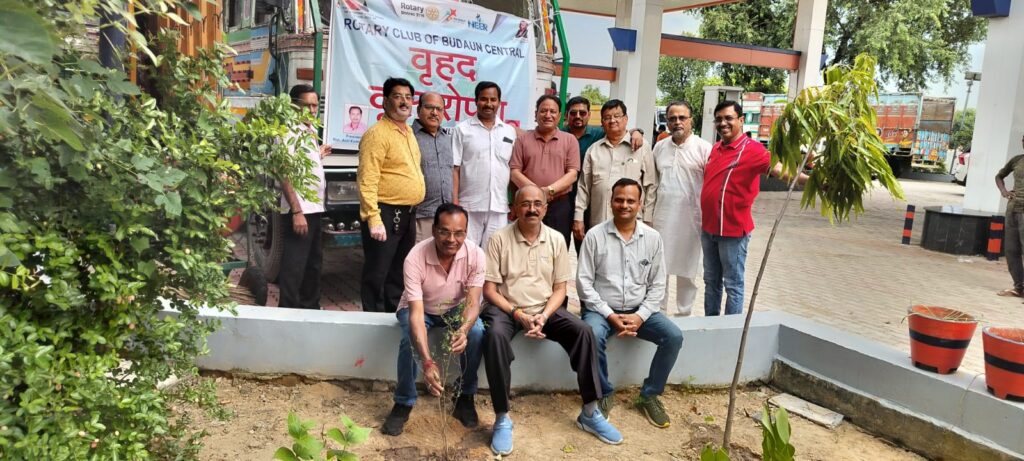 बदायूँ। रोटरी क्लब ऑफ बदायूँ सेण्ट्रल द्वारा वृहद वृक्षारोपण (पौधारोपण) कार्यक्रम अध्यक्ष अनिल गुप्ता के पेट्रोल पम्प पर सम्पल हुआ। पौधरोपण कार्यक्रम में क्लब के सभी सदस्यों द्वारा बढ़-चढ़कर हिस्सा लिया गया। क्लब के अध्यक्ष अनिल गुप्ता ने कहा कि आज से क्लब के कार्यक्रमों का शुभारम्भ हो रहा है। मैं अपने प्रतिष्ठान पर पोधों की ऐसे देखरेख करेंगे जैसे मनुष्य अपने बच्चों का पालन पोषण करता है।