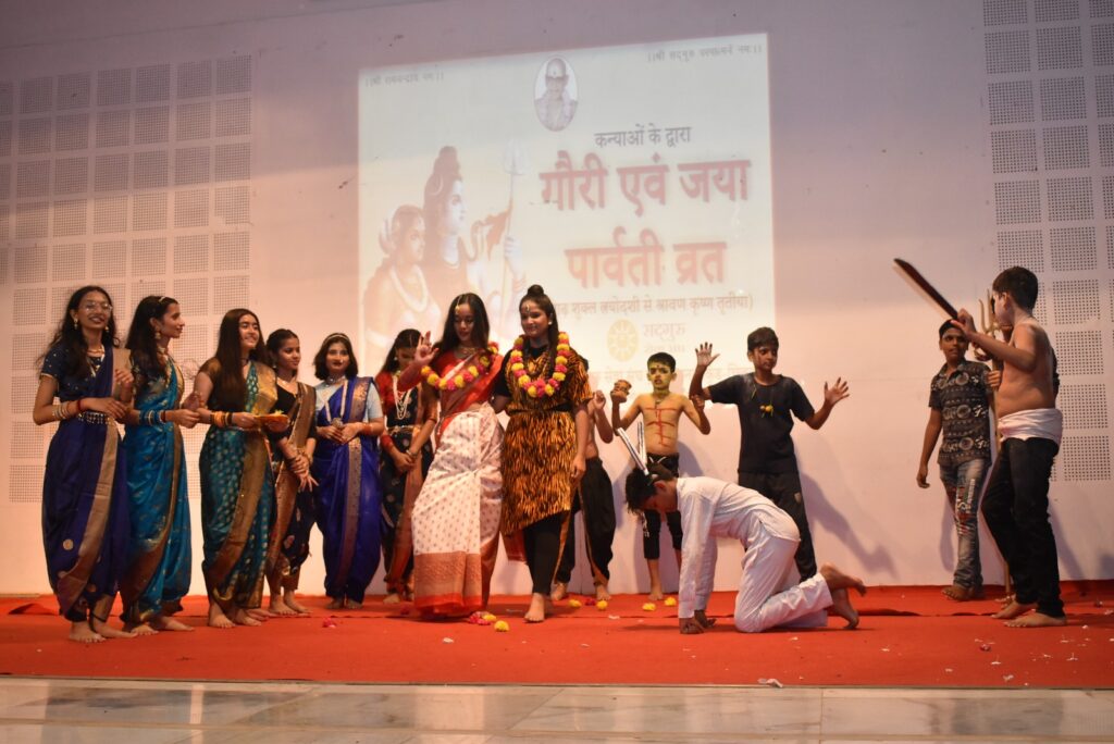 कि भगवान राम ही मुझे पति रूप में मिले और मां गौरी उन्हें आशीर्वाद प्रदान करती है कि भगवान राम ही तुम्हे पति रूप में मिलेंगे तब से इस व्रत को अविवाहित महिलाएं मनचाहा वर पाने के लिए ये व्रत रखती है साथ ही इस व्रत से हिंदू सनातन धर्म को हमारी आने वाली पीढ़ियां में जानेगी । प्रतिवर्ष इसकी संख्या में वृद्धि हो रही है। व्रत के अन्तिम चरण में माता गौरी-पार्वती की आराधना में रात्रि जागरण का एवं धार्मिक- साँस्कृतिक कार्यक्रम आयोजित करने का विधान हैं। इस वर्ष विद्याधाम सभागार में गुरुभाई-बहनों एवं सदगुरु परिवार के सदस्यों की उपस्थिति में विभिन्न धार्मिक प्रसंगों पर आधारित नयनाभिराम कार्यक्रम की प्रस्तुति बालिकाओं ने दी जिसे सभी ने खूब सराहा। बुधवार को सुबह पूजन के बाद प्रार्थना भवन से रघुवीर मन्दिर शोभा यात्रा निकाली गयी तथा कन्या पूजन एवं ज्वारा विसर्जन के साथ व्रत की पूर्णाहुति हुई।