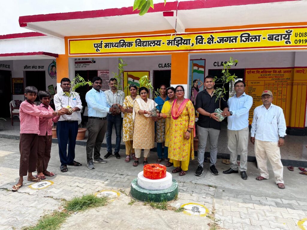 बदायूं l जिला भूमि संरक्षण अधिकारी अरविंद कुमार वर्मा ने गुरुवार को विकासखंड जगत क्षेत्र के उच्च प्राथमिक विद्यालय मझिया में शिक्षकों और बच्चों के साथ पौधारोपण किया l इससे पूर्व उन्होंने विद्यालय के बच्चों को संबोधित करते हुए कहा कि आज पर्यावरण एक गंभीर समस्या हो गई है l स्थिति यह है कि लोगों को शुद्ध हवा तक नहीं मिल पा रही है इसलिए जरूरी है कि हर एक व्यक्ति कम से कम एक =एक पौधा अवश्य लगाए और बड़े होने तक उसकी देखभाल करें l श्री वर्मा ने आवाहन किया कि हमें जल को भी सुरक्षित रखना होगा और लोगों को इस बात के लिए भी प्रेरित करना होगा कि वह जल का दोहन ना करें l जिला भूमि संरक्षण अधिकारी ने कहा कि पर्यावरण और जल की समस्या दिनों दिन गहराती जा रही है इसलिए अब जरूरत है कि हर इंसान को जागरुक होकर पर्यावरण की सुरक्षा करनी होगी और अधिक से अधिक पौधे लगाने होंगे l यदि अभी नहीं चेते तो आने वाली पीढ़ी के सामने और भी ज्यादा समस्या खड़ी हो जाएगी l विद्यालय की इंचार्ज प्रधानाध्यापक गीता सिंह और शिक्षक =शिक्षिकाओं ने भी बच्चों को पौधारोपण के लिए प्रेरित किया और कहा कि सभी बच्चे अपने घर के बाहर एक पौधा अवश्य लगाए l कार्यक्रम में वरिष्ठ सहायक राजेश कुमार , कैलाश चंद ,मनोज कुमार यादव, गौरव कुमार ,पुष्पेंद्र कुमार शिक्षिका संगीता रस्तोगी, प्रतिभा सिंह, श्वेता गुप्ता, शिक्षक राजीव कुमार अनुदेशक करुणेश आदि मौजूद रहे l