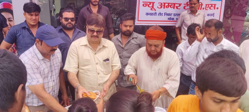 बदायूँ। ऑटो एजेंसी मालिक रफीक खां ने आज गांधी नगर के निकट कैम्प लगाकर कांवड़ियों के लिए भंडारे का आयोजन किया। मुख्य अतिथि के तौर पर भंडारे में पहुंचे पूर्व मंत्री आबिद रजा का रफीक अहमद खां और फहीम खां के द्वारा फूलमाला पहनाकर स्वागत किया। भंडारे में पूर्व मंत्री आबिद रजा के द्वारा शिवभक्तों को अपने हाथों से भोजन परोस कर दिया गया। पूर्व मंत्री आबिद रजा ने रफीक खां और सभी सहयोगी का आभार व्यक्त किया। इस मौके फहीम खां, नईम खां, शमशाद बाबा, आदेश, संजीव गुप्ता, सोमेंद्र, बिलाल, अली अब्दुला, राधा, पीयूष शर्मा आदि लोग मौजूद रहे।