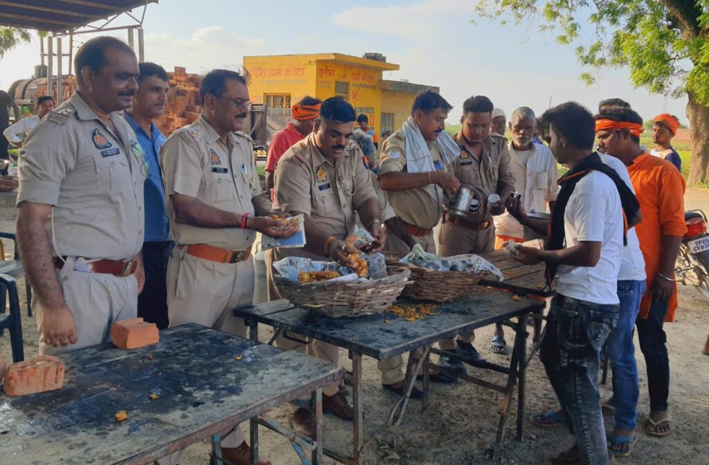 कुंवरगांव। कछला घाट से कांवरिया द्वारा जल लेकर अपने-अपने स्थान पर जाने का रेला चलता रहा थानाअध्यक्ष कुंवरगाव रामेंद्र सिंह द्वारा ग्राम दुगरैया पर थाना पुलिस के साथ मिलकर कावड़ियों को अपने हाथों से जल पान चाय- पकोड़ी की व्यवस्था कर जल पान कराया।