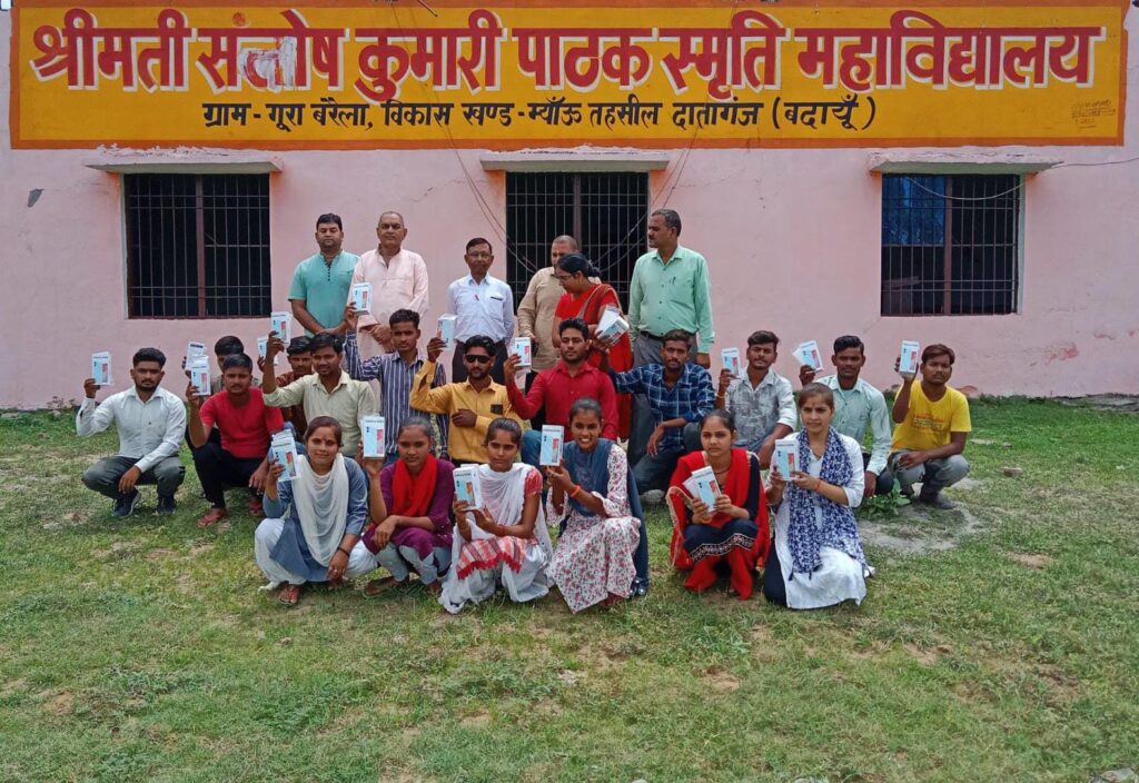 दातागंज।।श्रीमती संतोष कुमारी पाठक महाविधालय में भाजपा नेता डा शैलेश पाठक ने स्मार्ट फोन वितरित किए।बच्चे फोन पाकर खुशी से झूम उठे।