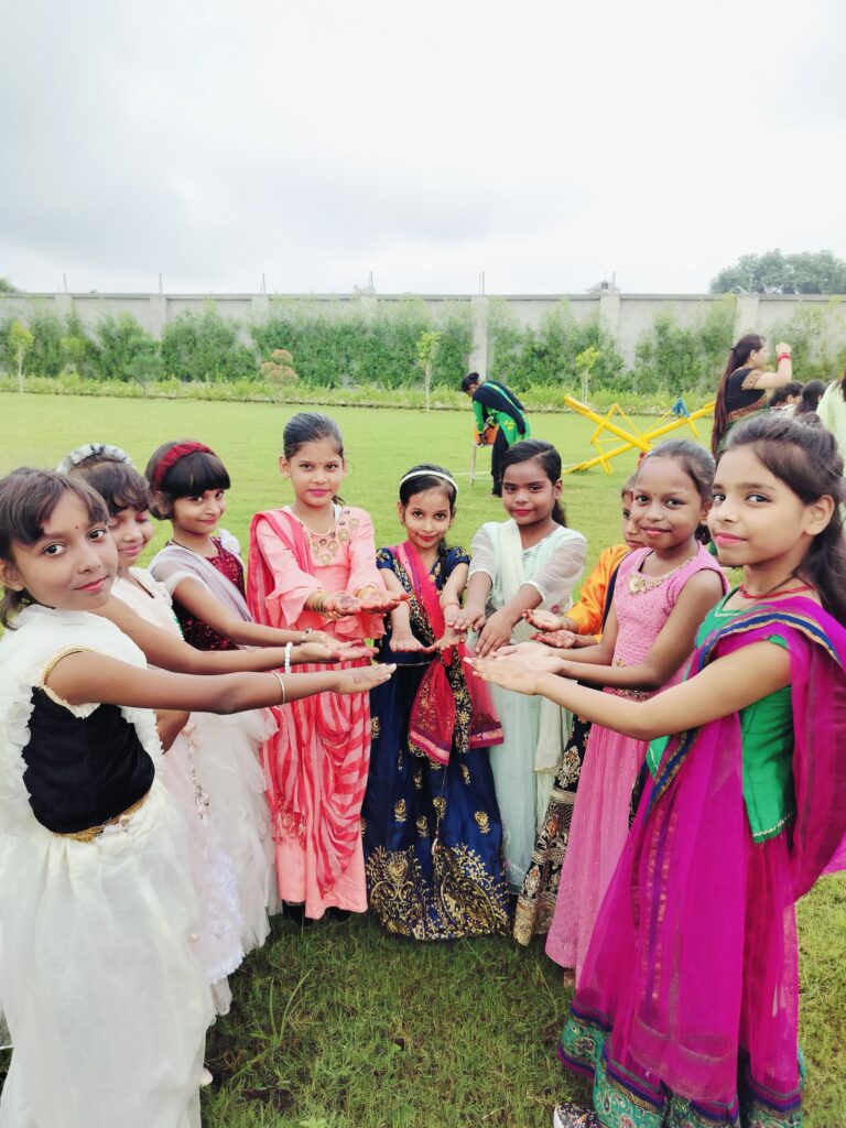 स्कूली नन्हीं छात्राओं ने झूले पर पेंग बढ़ाकर खुशी का इजहार किया और मेंहदी रचे हाथों के चित्र खिंचवाए। इस मौके पर ट्रस्टी शोभा वार्ष्णेय ने तीज क्वीन का पट्टिका भी बच्चियों को पहनाई । टीचिंग स्टाफ ने गीत और मल्हार को संगीत के साथ सराहनीय प्रस्तुति दी ।