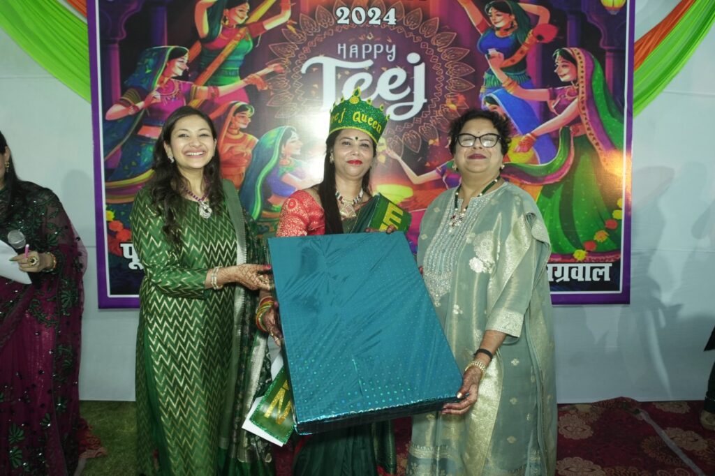 अन्य प्रतियोगियों को भी उपहार देकर सम्मानित किया गया। इस तीज महोत्सव में झूला, रैंप वॉक, सैल्फी पाइंट इत्यादि की भी व्यवस्था थी। जिसका सभी आये हुए लोगो ने पूरी मस्ती के साथ लुफ्त उठाया। इस भव्य कार्यक्रम में सभी लोग मस्ती में सरोवार दिखे। कार्यक्रम में लजीज व्यंजनों की भी व्यवस्था की गई थी। कार्यक्रम की आयोजक पूनम अग्रवाल व नंदिता अग्रवाल थी व एंकरिंग प्रिया राना, गीता मिश्रा व नताशा चांदना के द्वारा की गई।