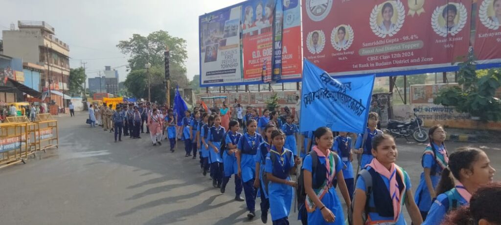 बदायूं। काकोरी ट्रेन एक्शन शताब्दी महोत्सव के उपलक्ष में देशभक्तों और क्रांतिकारियों के सम्मान में प्रभातफेरी निकाली गई। जिसमें विभिन्न विद्यालयों के स्काउट गाइड, एनसीसी कैडेट्स, राष्ट्रीय सेवा योजना के छात्र-छात्राओं ने जोश खरोश के साथ हिस्सा लिया। भारत माता के जयघोष से वातावरण गुंजायमान रहा। सीडीओ केशव कुमार ने हरी झंडी दिखाकर प्रभातफेरी को रवाना किया। स्काउट संस्था के प्रादेशिक वरिष्ठ उपाध्यक्ष एवं जिला मुख्यायुक्त महेश चंद्र सक्सेना, जिला विद्यालय निरीक्षक डा. प्रवेश कुमार, जिला बेसिक शिक्षा अधिकारी वीरेंद्र कुमार सिंह, जिला संगठन कमिश्नर स्काउट मोहम्मद असरार, पूर्व जिला ट्रेनिंग कमिश्नर संजीव कुमार शर्मा, जिला प्रशिक्षण आयुक्त पूर्वी सक्सेना के नेतृत्व में स्काउट गाइड सुबह सात बजे शहर के रामलीला मैदान में विभिन्न विद्यालयों के स्काउट गाइड, एनसीसी कैडेट, राष्ट्रीय सेवा योजना की छात्र-छात्राएं इस प्रभातफेरी में शामिल हुए। प्रभातफेरी रामलीला मैदान से शुरु हुई।