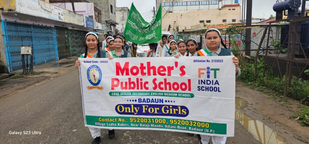 बदायूँ। उझानी रोड स्थित मदर्स पब्लिक स्कूल में शासन स्तर पर मिले निर्देशानुसार यातायात के नियमों के प्रति जागरूकता अभियान चलाया गया। सड़क सुरक्षा पखवाड़ा कार्यक्रम के अंतर्गत विद्यालय से बालाजी मंदिर तक जागरूकता रैली निकालते हुए लोगों को यातायात नियमों के प्रति जागरूक किया गया। इस दौरान स्कूली छात्राओं ने हेलमेट का प्रयोग न करने वाले लोगों को सड़क पर रोक – रोक कर जागरूक किया। “एक बाइक दो सवार, हेलमेट है उनकी पहचान…, वाहन धीरे चलाएं, अपना और अपनों का जीवन बचाएं…, धीरे चलें, सुरक्षित चलें… आदि नारों के साथ हाथों में पोस्टर लिए छात्राओं ने लोगों को यातायात नियमों का पाठ पढ़ाया। मौका था सड़क सुरक्षा के तहत निकाली गई प्रभातफेरी का। पखवाड़े में छात्राओं के साथ-साथ ड्राइवरों को यातायात सुरक्षा की शपथ ग्रहण कराई गई। विद्यालय में छात्राओं को यातायात नियमों से अवगत कराते हुए बताया गया कि जब तक उम्र 18 वर्ष ना हो और लाइसेंस न बन जाए तब तक वाहन चलाना कानूनन अपराध है।