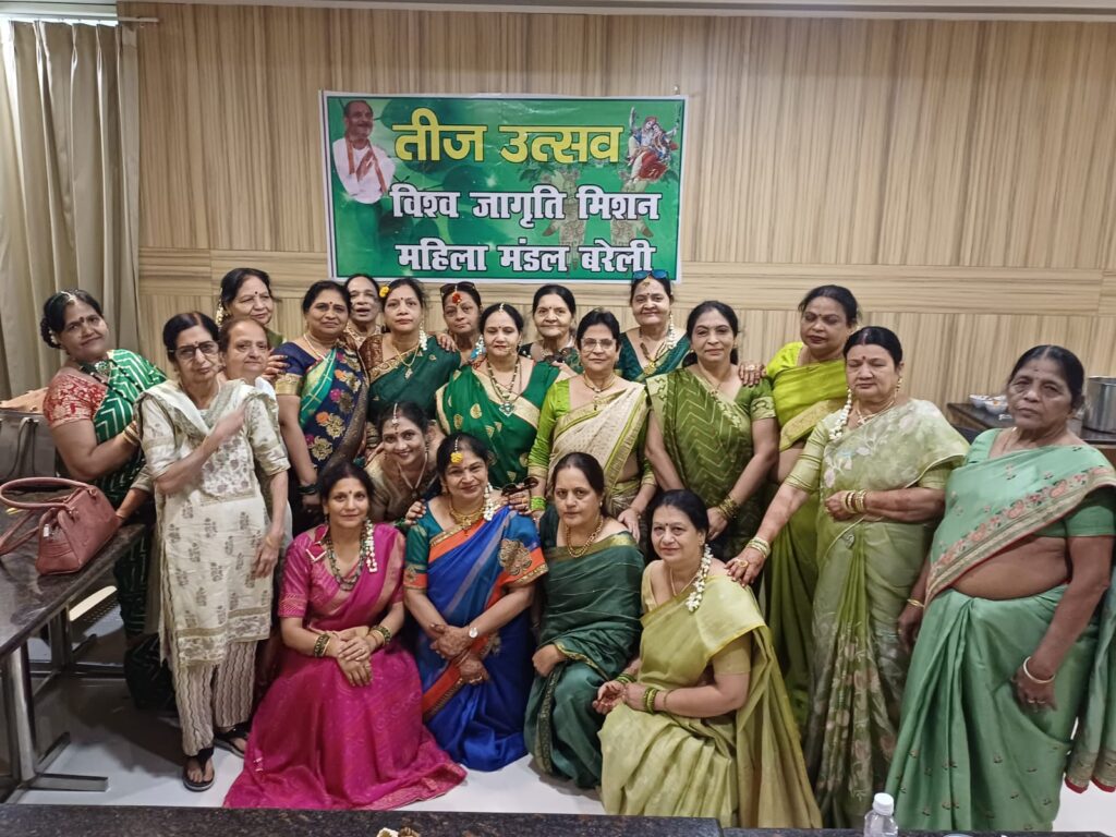 बरेली । विश्व जागृति मिशन महिला मंडल बरेली ने एक होटल राजेंद्र नगर में महिलाओं ने सोलह सिंगार में तीज कार्यक्रम धूमधाम से मनाया । कार्यक्रम में विभिन्न प्रतियोगिता का आयोजन किया गया । तीज क्वीन का खिताब बंदना अग्रवाल को मिला । द्वितीय पुरस्कार कंचन अग्रवाल एवं तृतीय पुरस्कार विजेता रीना अग्रवाल रही । मेहंदी एवं बेस्ट परफॉर्मेंस के पुरस्कार रश्मि अग्रवाल, गीता जोशी एवं दीपा त्रिपाठी को मिला । सरप्राइज गेम में सविता अरोड़ा, रेनू मिश्रा, गीतेश गुप्ता, सुमित्रा गंगवार को मिला । 1 मिनट गेम में सुषमा गुप्ता, मनीषा मेहरा, अनुराधा खंडेलवाल विजेता रही । पुरस्कार वितरण महिला प्रधान ममता गर्ग ने किया । संरक्षक सविता अरोड़ा ने सभी बहनों को तीज की शुभकामनाए दी । कार्यक्रम में रेनू वार्ष्णेय, निरेश महेश्वरी, सुधा अग्रवाल, ललिता अनेजा रेनू सूरी, उमा रेलन ने सहभागिता की । कार्यक्रम का संचालन मंजू गोयल के द्वारा किया गया ।