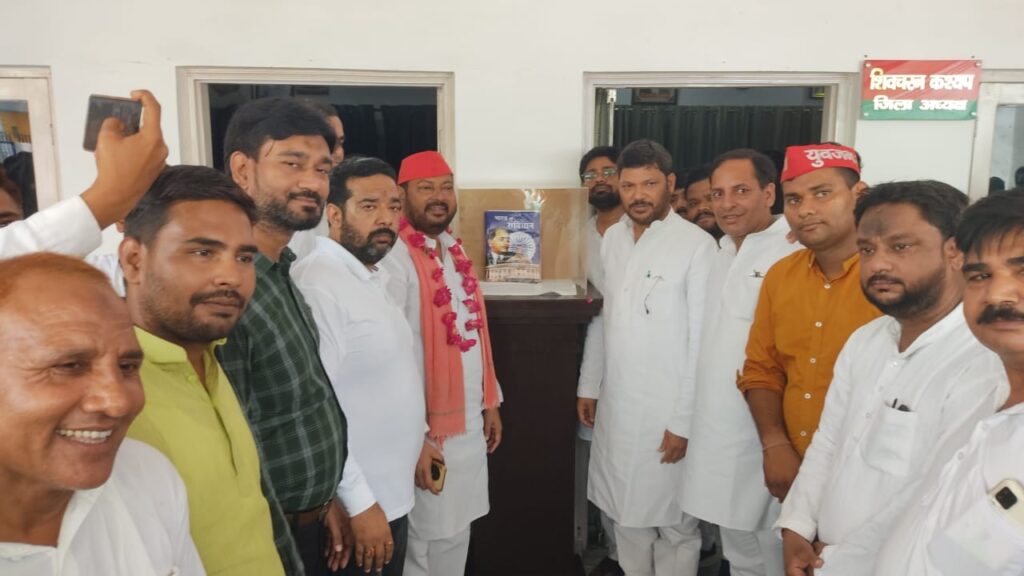 सपा कार्यालय पर संविधान मान स्तंभ की हुई स्थापना