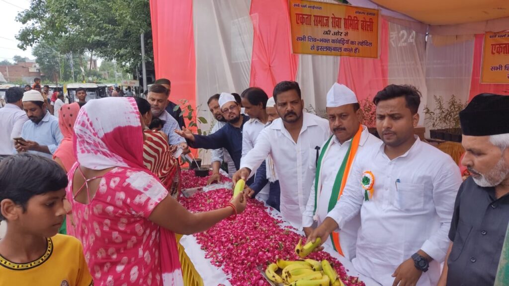 मुस्लिम समुदाय के लोगों ने बड़े उत्साह के साथ दिल खोलकर पुष्प वर्षा की राह चलते लोगों ने जब इस तरह का यह नजारा देखा तो समिति के कार्यकर्ताओं व उनके कार्य की सराहना की कार्यक्रम में बरेली को एक नई पहचान दिलाने वाले और बरेली का नाम रोशन करने वाले यूट्यूब की दुनिया के चमकते हुए सितारे ईशान अली व एजाज अली का भी विशेष सहयोग रहा इन लोगों ने भी कावड़ियों का फल व जूस व पुष्प वर्षा कर बड़े उत्साह के साथ स्वागत किया समिति के कैंप में हर कोई आ कर चाहे बच्चे हो बड़े हो या महिलाएं हो सभी ने उनके साथ बड़े चाव से सेल्फी भी ली कार्यक्रम में एसपी क्राइम मुकेश प्रताप सिंह, डिप्टी सीएमओ डॉक्टर लाइक अंसारी डॉक्टर मोहम्मद फाजिल डॉक्टर अमिद मुराद डॉक्टर सबीन एहसान समाजसेवी पारुल धवन मलिक डॉक्टर अजहर मिर्जा शहाब बेग दानिश खान बिलाल मासूम शानू काजमी फसाहत नूर गौरव यादव उस्मान गनी इमरान खान शब्बू कुरैशी एडवोकेट जहीर खान वह बड़ी तादाद में शहर के सभ्रांत लोग मौजूद रहे।