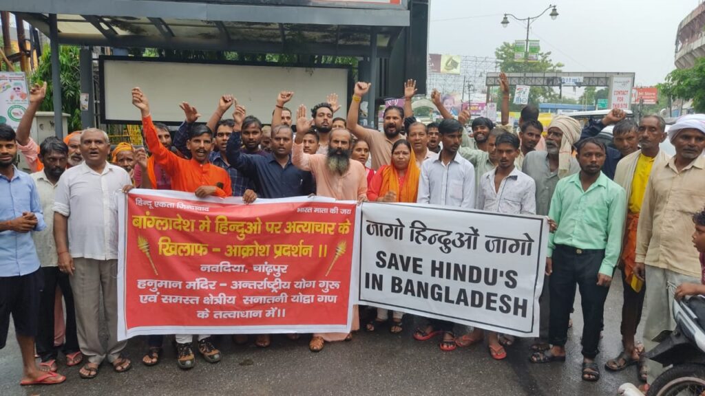 बरेली। बांग्लादेश में हो रहे हिंदू साथियों के साथ अत्याचार और धार्मिक स्थलों को तोड़ने के विरोध में अंतर्राष्ट्रीय योग गुरु एवं समस्त क्षेत्रवासी सुखदेव महाराज के नेतृत्व में प्रदर्शन किया और जिलाधिकारी कार्यालय में एसीएम प्रथम को ज्ञापन दिया। सुखदेव महाराज ने कहा कि बांग्लादेश में हिन्दू सनातनियों की जान माल समपत्ति व उनके धर्म की रक्षा की जाए। बांग्लादेश में मंदिरों पर हो रहे लगातार हमलों को रोका जाये तथा क्षतिग्रस्त मंदिरों का पुनः निर्माण बांग्लादेश सरकार द्वारा कराया जाये। बांग्लादेश में जो हिन्दू सनातनी इस नरसंहार में घर से बेघर हुये है उनका बांग्लादेश सरकार पुर्नवास कराये। प्रधानमंत्री भारत सरकार द्वारा अन्तर्राष्ट्रीय स्तर पर बाग्लादेश में अल्पसंख्यक हिन्दुओं पर हो रहे अत्याचार पर तत्काल रोक लगवाई जाए एवं भारत सरकार द्वारा आपातकालीन कोष द्वारा वहां के पीडित हिन्दुओं के लिए तत्काल सहायता प्रदान की जाए। ज्ञापन देने बालो में राज रानी प्रेमपाल , राजेश तोमर , नन्ने लाल मौर्य , मोर सिंह ,