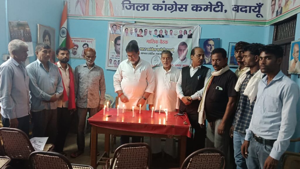 बदायूं। स्वतंत्रता दिवस की पूर्व बेला पर आज जिला कांग्रेस कार्यालय पर जिला कांग्रेस कमेटी अध्यक्ष की ओमकार सिंह की अध्यक्षता में एक स्वतंत्रता दिवस कार्यक्रम हेतु तैयारी बैठक संपन्न हुई ।जिसमे कि स्वतंत्रता संग्राम के सेनानियों को मोमबत्ती जलाकर याद गया । कार्यक्रम में जिला कांग्रेस के अध्यक्ष ओंकार सिंह ने कहा कि लंबे संघर्ष के बाद देश को आजादी मिली अनगिनत स्वतंत्रता संग्राम सेनानियों ने आजादी के लिए कुर्बानियां दी हम सबको मिलकर आजादी आंदोलन के सेनानियों के पदों पर चलने को पूर्ण तैयार रहना चाहिए देश की आजादी को अक्षुण्ण बनाए रखने का संकल्प लेना चाहिए । कार्यक्रम में प्रदेश कांग्रेस कमेटी के सचिव जितेंद्र कश्यप जी ने स्वतंत्रता संग्राम सेनानियों को याद करते हुए कहा कि आज हम सब का कर्तव्य है कि हमारे पूर्वजों में जो हमें आजादी दिलवाई है इसको हम संकल्पित होकर देश के प्रति अपने कर्तव्यों को निभाएं। शहर कांग्रेस कमेटी के अध्यक्ष असरार अहमद ने उपस्थित पदाधिकारी को संबोधित करते हुए कहा कि आज स्वतंत्रता संग्राम सेनानी की बदौलत ही हम इस देश में स्वतंत्रता से अपनी बात रख सकते हैं। कार्यक्रम का संचालन जिला कांग्रेस कमेटी का महासचिव इगलास हुसैन ने किया। इस अवसर पर कांग्रेस सेवा दल के पूर्व अध्यक्ष और कांग्रेस शहर कांग्रेस कमेटी के उपाध्यक्ष हरीश कश्यप को शहर में झंडारोहण की जिम्मेदारी दी गई। जिसको उन्होंने सहर्ष स्वीकार किया इस अवसर पर जिला सचिव वीरपाल सिंह शहर उपाध्यक्ष अकील अहमद, सत्तार मियां रविंद्र कुमार राजकुमार प्रदीप सिंह नरोत्तम सिंह वीरेश यादव आदि कार्यकर्ता पदाधिकारी उपस्थित रहे।