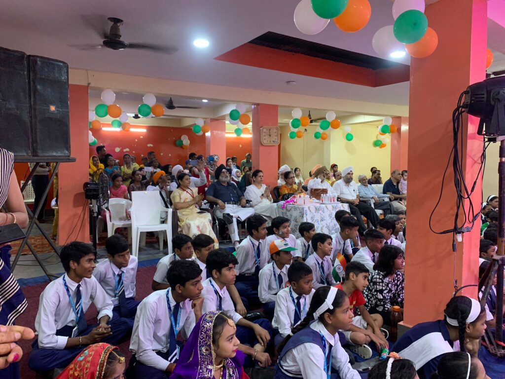 पर नृत्य कर पंजाब की झलक दिखा दी। इस अवसर पर और भी रंगारंग कार्यक्रम प्रस्तुत किए गए । समय-समय पर कराए गए विभिन्न कंपटीशन में प्रथम स्थान प्राप्त करने वाले बच्चों को पुरस्कृत किया गया। अंत में विद्यालय की प्रधानाचार्या नीलम अग्रवाल ने स्वतंत्रता दिवस की बधाई दी। इस पुनीत अवसर पर विद्यालय की अध्यक्ष महोदया रजनी अनेजा जी वरिष्ठ उपाध्यक्ष सरदार गुरदीप सिंह जी उपाध्यक्ष वीना कोचर जी प्रबंधक एड. राजेंद्र अनेजा उप प्रबंधक सरदार रंजीत सिंह जी कोषाध्यक्ष संजय मलिक जी व गुरुद्वारा साहिब के उपाध्यक्ष सरदार मंजीत सिंह जी उपस्थित रहे। कार्यक्रम का संचालन कुमारी निदा खान व कुमारी परमीत कौर ने किया। कार्यक्रम में समस्त स्टाफ उपस्थित रहा। अंत में प्रसाद का वितरण विद्यालय की अध्यक्ष रजनी अनेजा की ओर से करवाया गया।