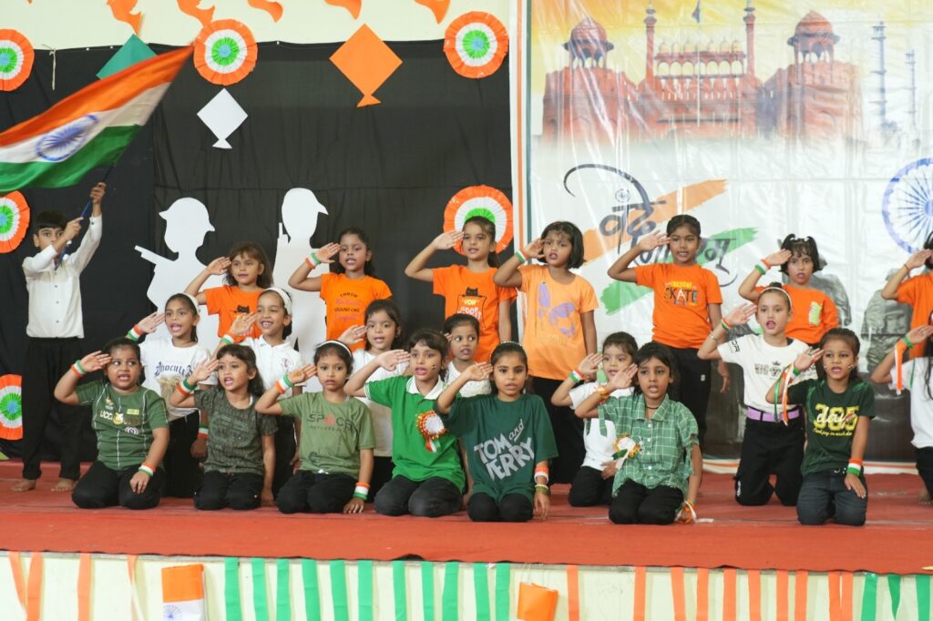 तथा देश तरक्की की राह पर है। माला गुप्ता के निर्देशन में कक्षा 11 की छात्राओं ने बंगाली गीत तथा कक्षा 7 की छात्राओं ने राष्ट्रभक्ति गीत प्रस्तुत किया। प्रधानाचार्य ने मुख्य अतिथियों को चेयरमैन श्री विमल कृष्ण अग्रवाल एवं निदेशक श्री नीलांशु अग्रवाल और उपप्रधानाचार्या मीनाक्षी शर्मा ने शैक्षणिक प्रमुख वाई0के0 सिंह कोे वुकेट प्रदान कर वैज लगाया। गौरव शर्मा ने प्रधानाचार्य को वुकेट प्रदान किया। कोऑर्डिनेटर शशि शर्मा व रिधिमा थरेजा ने उपप्रधानाचार्या जी को वुकेट प्रदान कर वैज लगाया। कार्यक्रम का प्रारंभ दीप प्रज्जवल के साथ विद्यालय के निदेशक नीलांशु अग्रवाल व प्रधानाचार्य, उपप्रधानाचार्या एवं शैक्षणिक प्रमुख की उपस्थिति में हुआ। कक्षा 6 के छात्र-छात्राओं ने एक देशभक्ति गीत प्रस्तुत किया। ’तन-मन से अपने देश की सेवा करेंगे हम। कार्यक्रम की प्रस्तुति मनोहरी थी, जिसमें भारत माता व वीर जवानों को दर्शाया गया। कक्षा 4 व 5 के विद्यार्थियों ने राष्ट्रभक्ति गीत पर आर्केस्ट्रा की मनभावक प्रस्तुति दी। विद्यालय के निदेशक नीलांशु अग्रवाल ने सभी को स्वतंत्रता दिवस की बधाई देते उन क्रांतिकारी वीरों को याद किया, जिनके बलिदान स्वरूप आज हम आजाद है उन्होनें देश की अनेकता में एकता की चर्चा की। उन्होनें कहा कि आज हमारे अन्दर प्रेम भक्ति का जज्बा नहीं हैं, अवश्यकता है उसे जगाने की। उन्होनें विद्यार्थियों को उनके कर्तव्यों की याद दिलाई। कक्षा 1 के छात्रों द्वारा केसरिया परिधान सफेद परिधान व हरें परिधान मंे पैरोडी प्रस्तुत की। कक्षा 6 के छात्रों ने मिसाइल का मॉडल प्रदर्शित किया। भारत की विविधता के अंतर्गत कश्मीर, राजस्थान, बंगाल, यूपी, गुजरात, पंजाब की एक झलक प्रस्तुत की गई। इस कार्यक्रम ने दर्शकों को भारत की सैर करा दी, कार्यक्रम की प्रस्तुतियों ने सभी का मन मोह लिया।