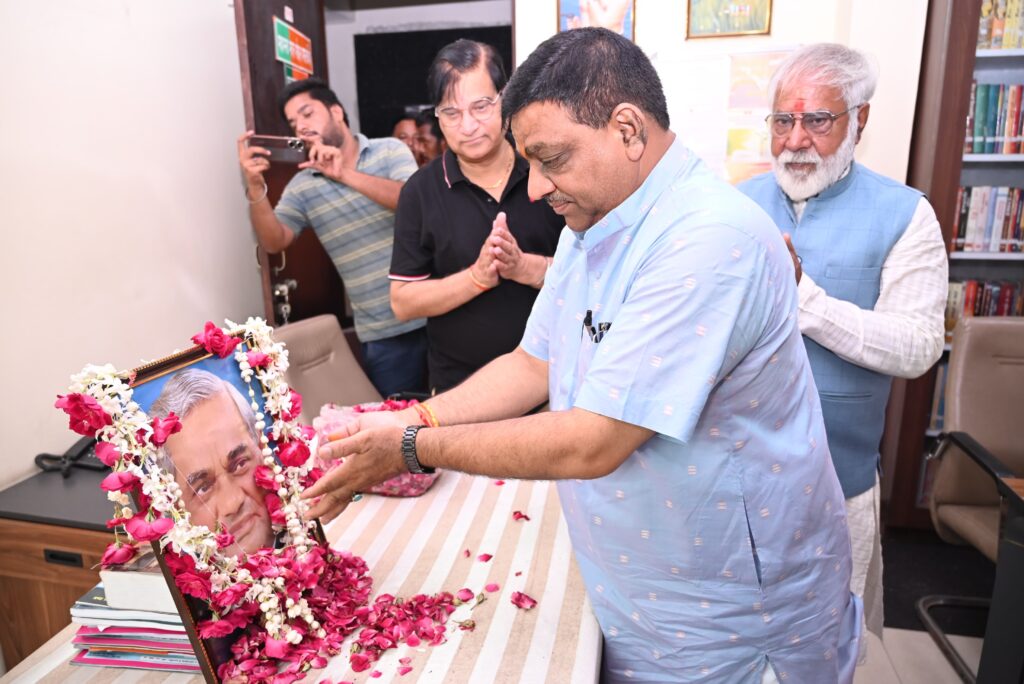 बरेली। भारतीय जनता पार्टी कार्यालय पर भारत रत्न से सम्मानित पूर्व प्रधानमंत्री अटल बिहारी वाजपेयी की पुण्यतिथि पर उनके चित्र पर माल्यार्पण कर पुष्पांजलि अर्पित की। सर्व प्रथम कैंट विधायक प्रदेश सहकोषाध्यक्ष संजीव अग्रवाल ने अटल बिहारी वाजपेयी के चित्र पर माल्यार्पण कर पुष्पांजलि अर्पित की, उनके साथ महानगर अध्यक्ष अधीर सक्सेना गुलशन आनंद अरूण कश्यप प्रभु दयाल लोधी डा तृप्ति गुप्ता बंटी ठाकुर आदि कार्यकर्ता एवं पदाधिकारी उपस्थित रहे।