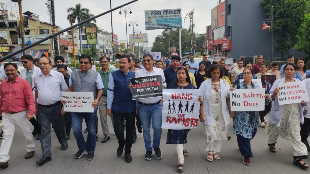 जूनियर डॉक्टर की रेप के बाद हत्या के विरोध आईएमए के डॉक्टरों ने निकाली रैली