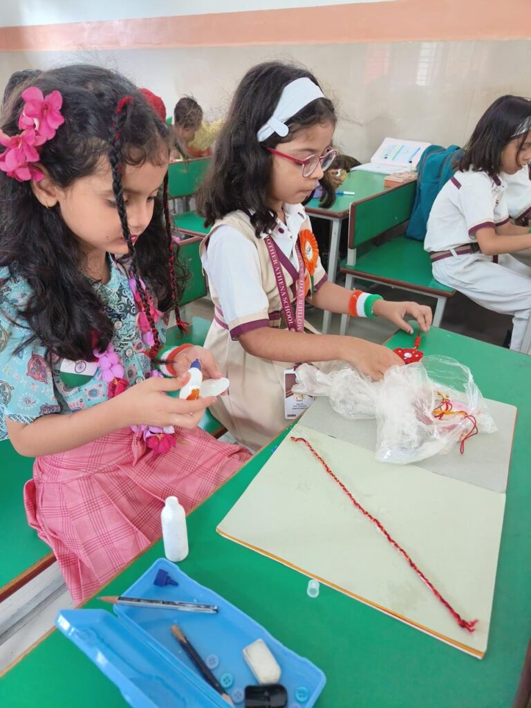 बदायूँ। मदर एथीना स्कूल में कक्षा-1 से कक्षा-5 तक ‘राखी मेंकिंग’ एवं कक्षा-6 से कक्षा-10 तक के विद्यार्थियों के लिए ‘मेंहदी प्रतियोगिता’ का आयोजन किया गया। जिसमें प्रतिभाग कर विद्यार्थियों ने बहुत सुंदर-सुंदर डिजाइन एवं कलाकृतियों की मेंहदी हाथों एवं कागज़ों पर बनाई। इसके अलावा विद्यार्थियों ने घर पर रखी पुरानी चीज़ों का सदुपयोग करते हुए बहुत आकर्षक राखियाँ बनाईं।