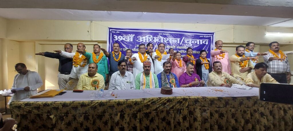 बरेली । उत्तर प्रदेश राज्य कर्मचारी महासंघ का प्रांतीय चुनाव/ अधिवेशन समय प्रात: 11 बजे से गांधी भवन सभागार लखनऊ में संपन्न हुआ । जिसमें समस्त सम्बद्ध घटक संगठनो के पदाधिकारी शामिल हुए | उक्त चुनाव में उत्तर प्रदेश राज्य कर्मचारी महासंघ, उत्तर प्रदेश मिनिस्ट्रीएल सर्विसेज एसोसिएशन, उत्तर प्रदेश चतुर्थ श्रेणी राज्य कर्मचारी महासंघ, उत्तर प्रदेश पंचायती राज सेवा परिषद, उत्तर प्रदेश पंचायती राज ग्रामीण सफाई कर्मचारी संघ, लोक निर्माण विभाग उत्तर प्रदेश, स्वास्थ विभाग के प्रदेश अध्यक्ष एवं महामंत्री शामिल हुए | उत्तर प्रदेश राज्य कर्मचारी महासंघ का निर्विरोध चुनाव सम्पन्न हुआ । जिसमें राज्य कर्मचारी महासंघ के प्रदेश अध्यक्ष के पद पर रामलाल यादव, प्रदेश कार्यवाहक अध्यक्ष हेमेंद्र कुमार गुर्जर, प्रांतीय वरिष्ठ उपाध्यक्ष कीर्तिमान, प्रदेश महामंत्री श्रवण कुमार पाल, प्रदेश उपाध्यक्ष श्री तेजपाल बहादुर, संजीव कुमार सक्सेना, राजशेखर तिवारी, मोहम्मद सलीम, धर्मराज सिंह, संजय कुमार आर्य, प्रदेश कोषाध्यक्ष दिग्विजय नाथ पांडे, प्रांतीय संगठन मंत्री नगीना यादव, सतीश कुमार मिश्रा, मोहम्मद इराज, हरिनाम सिंह आदि र्निविरोध निर्वाचित हुए । चुनाव उपरांत नवनिर्वाचित प्रांतीय पदाधिकारियों को संघ चुनाव अधिकारियों द्वारा पद एवं गोपनीयता की शपथ दिलाई गई | महासंघ के उक्त प्रांतीय अधिवेशन/ चुनाव में आल इंडिया ओ.पी.एस. फाउंडेशन के राष्ट्रीय अध्यक्ष डॉ. मंजीत सिंह पटेल, पंचायती राज सेवा परिषद के प्रदेश अध्यक्ष यू.पी. सिंह, उत्तर प्रदेश चतुर्थ श्रेणी राज्य कर्मचारी महासंघ के प्रदेश अध्यक्ष क्रांति सिंह, प्रदेश महामंत्री अशोक कुमार, प्रदेश कोषाध्यक्ष धर्म पाल सागर, उर्फ डी, पी, सिंह, सागर बरेली से उत्तर प्रदेश पंचायती राज ग्रामीण सफाई कर्मचारी संघ बरेली से जिला महामंत्री सर्वेश कुमार मौर्य, लखनऊ जिला अध्यक्ष किशन बाल्मिकी, गोंडा जिला अध्यक्ष राघवेन्द्र तिवारी, गाजीपुर जिला से श्याम नारायण कुमार आदि अनेकों जनपदों से विभिन्न विभागों के संघों, परिसंघों के पदाधिकारी मौजूद रहे ।