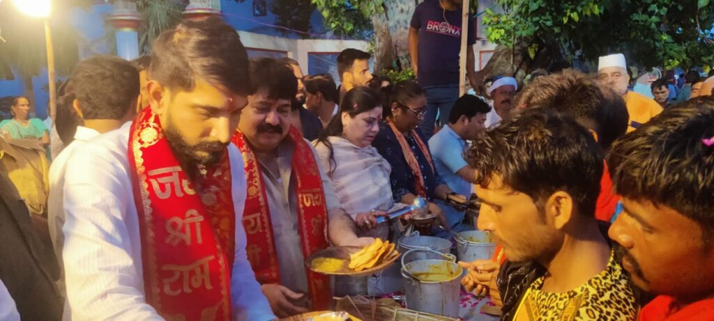 बदायूँ। नगर पालिका परिषद के तत्वाधान में पालिका अध्यक्ष फात्मा रजा के सौजन्य से बिरुआवाड़ी मंदिर पर शिवभक्तों पर की पुष्प वर्षा व भंडारे का आयोजन किया। मुख्य अतिथि के तौर पर सपा सांसद आदित्य यादव एव विशिष्ट अतिथि के तौर पूर्व राज्यमंत्री/सदर विधायक आबिद रजा रहे मौजूद।शनिवार को नगर पालिका परिषद बदायूं की अध्यक्ष फात्मा रजा ने श्रावण मास में शिवभक्तों के लिए बिरुआवाड़ी मंदिर पर भंडारे का आयोजन किया। भंडारे में आए उपस्थित सैकड़ों कार्यकर्ताओं ने सपा सांसद आदित्य यादव व पूर्व मंत्री आबिद रजा का फूलमाला डालकर स्वागत किया। कार्यक्रम के मुख्य अतिथि सपा सांसद आदित्य यादव एवम विशिष्ट अतिथि पूर्व मंत्री आबिद रजा जब बिरूआवाड़ी मंदिर पहुंचे तब मंदिर के पुजारी ने दोनो अथितियों को तिलक लगाकर आशीर्वाद दिया। कार्यक्रम के मुख्य अतिथि आदित्य यादव ने भंडारे में आए शिवभक्तों व कार्यकर्ताओं का आभार प्रकट किया। इसके पश्चात् मुख्य अतिथि सांसद आदित्य यादव ने शिवभक्तों पर पुष्प वर्षा कर अपने हाथों से प्रसाद वितरण किया।