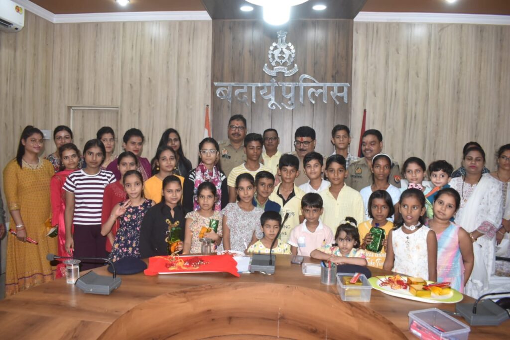 बदायूँ। एसएसपी डॉ0 बृजेश कुमार सिंह ने पुलिस लाइन सभागार पर उपस्थित होकर भाई-बहन के अटूट प्रेम के प्रतीक रक्षाबंधन के पावन पर्व को पुलिस लाइन परिसर की महिलाओं व बच्चों के साथ राखी बंधवाकर हर्षोउल्लास के साथ मनाया तथा उन्हे सम्मान प्रदान किया। उन्हे आशीर्वचन देते हुए सुरक्षा एवं रक्षा का वचन दिया। रक्षाबंधन का त्योहार भाई-बहन के रिश्ते की मिठास और सौहार्द को मनाने का एक खास अवसर है। इस दिन बहन अपने भाई की कलाई पर राखी बांधती है, और भाई अपनी बहन को सुरक्षा और सुख-समृद्धि का आश्वासन देता है। यह त्योहार परिवार और रिश्तों की अहमियत व भाई-बहन के बीच के प्यार को दर्शाता है। इस मौके पर श्री आलोक मिश्र क्षेत्राधिकारी नगर, शक्ति सिंह क्षेत्राधिकारी लाइन /उझानी व श्रीमती संगीता यादव महिला थानाध्यक्ष बदायूँ मौजूद रही।
