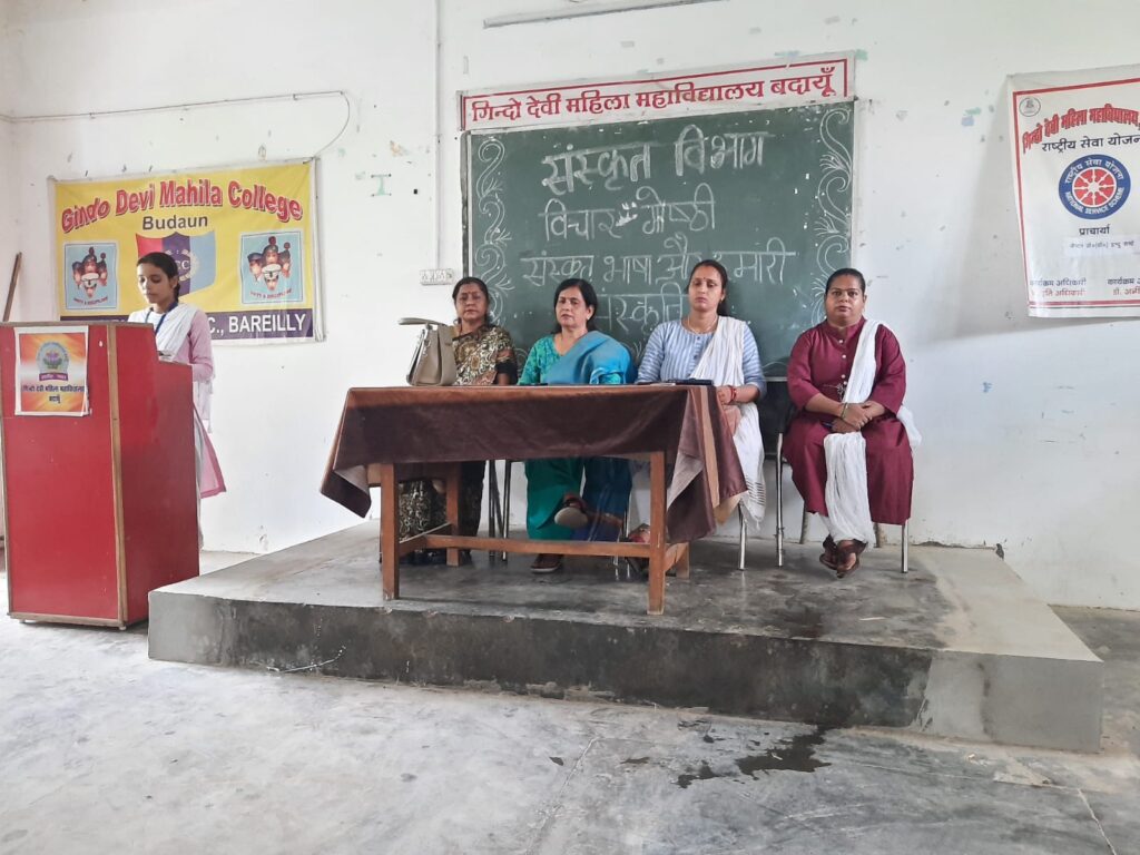 बदायूँ। गिंदो देवी महिला महाविद्यालय की ओर से प्राचार्या कैप्टन प्रोफेसर इन्दु शर्मा के निर्देशन में 22 अगस्त तक चलने वाले संस्कृत सप्ताह के अंतर्गत आज संस्कृत विभाग द्वारा संस्कृत सप्ताह मनाया गया। संस्कृत सप्ताह प्रतिवर्ष अगस्त माह में मनाया जाता है एवं पूर्णिमा के दिन संस्कृत दिवस मनाया जाता है।संस्कृत संसार की सबसे प्राचीनतम एवं शुद्ध भाषा है। प्राचार्या एवं संस्कृत विभाग की विभागाध्यक्ष डॉ इंदु शर्मा ने छात्राओं को संस्कृत की विशेषता के बारे में बताते हुए कहा कि वेदों एवं उपनिषदों की मूल भाषा संस्कृत ही है। संस्कृत दिवस एवं संस्कृत सप्ताह मनाने का मूल उद्देश्य संस्कृत भाषा का प्रचार प्रसार करना है।संस्कृत सप्ताह में श्रावण पूर्णिमा से 3 दिन पहले और 3 दिन बाद का समय शामिल है। एक प्रतिष्ठित संस्कृत विद्वान और व्याकरणविद् पाणिनि की जयंती पर श्रद्धांजलि के रूप में मनाया जाता है। हिंदी विभाग की डॉ शिखा पांडेय ने संस्कृत को प्राचीन एवं देवताओं की भाषा बताया। हिंदी विभाग की डॉ निशि अवस्थी ने बताया कि संस्कृत हमारे गुरुजनों की भाषा है,इसके विभिन्न मंत्र का आधार हमें सबका का सम्मान करना सिखाते हैं। हिंदी विभाग की डॉ निशा साहू ने बताया हमारे सभी सरकारी विभागों के प्रतीक संस्कृत में ही हैं। अंग्रेजी विभाग की डॉ अवनिशा वर्मा ने संस्कृत भाषा के लिए बताया यह एक ऐसी भाषा है जिसका प्रयोग वर्तमान में कंप्यूटर की कोडिंग में किया जाता है। समाजशास्त्र विभाग की डॉ इति अधिकारी ने बताया की संस्कत को वैज्ञानिक भाषा माना गया है, नासा के वैज्ञानिक भी इस भाषा का लोहा मानते हैं एवं आविष्कार में संस्कृत का प्रयोग करते हैं। संस्कृत सप्ताह के अंतर्गत महाविद्यालय की बी ए फर्स्ट सेमेस्टर की छात्रा मुस्कान एवं अनामिका द्वारा अपने विचारों को प्रस्तुत किया गया। इस अवसर पर महाविद्यालय परिवार के सभी सदस्य उपस्थित रहे।कार्यक्रम का सफल एवं कुशल संचालन हिंदी विभाग की डॉ अनीता सिंह द्वारा किया गया।
