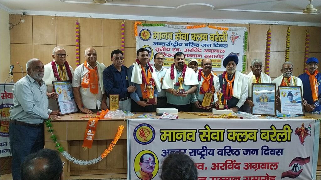 बरेली। मानव सेवा क्लब के तत्वावधान में समाजसेवी इं. अंगन लाल गुप्ता, महेश मेहरोत्रा और अविनाश चंद्र ने एस.आर. एम. एस. के ऑर्गैन्स विभाग के प्रभारी चिकित्सक को अपने देहदान के शपथ पत्र सौंपे और मृत्यु के उपरांत देहदान करने की शपथ ली। जिन्हें क्लब के अध्यक्ष सुरेन्द्र बीनू सिन्हा, प्रदीप माधवार और सी एस अंकित अग्रवाल ने सम्मानित किया। हार, शाल, प्रशस्ति पत्र और स्मृति चिन्ह प्रदान किया गया। कार्यक्रम के मुख्य अतिथि डा. एम.एस. बासु, ने सभी से समाज की सेवा करने की बात कही। विशिष्ट अतिथि अनिल अग्रवाल ने सभी लोगो से जल बचाकर पृथ्वी पर उपकार करने की बात कही। अनिल अग्रवाल ने कहा कि उनके वाटर पार्क में गंदे पानी की एक बूंद भी व्यर्थ नहीं जाती। जल को रिसाइकिल के उसका खेती में उपयोग होता है। यही बात महेश मल्होत्रा ने भी दोहराई जिसका अंगन लाल गुप्ता ने भी समर्थन कर कहा की उन्होंने भी अपने घर पर बारिश के पानी को भी व्यर्थ नहीं जाने की व्यवस्था की हुई है। सुरेश बाबू मिश्र ने महर्षि दाधीच को सबसे बड़ा समाजसेवी बताय रोटरी भवन में स्व. अरविंद अग्रवाल वरिष्ठ नागरिक सम्मान समारोह का प्रारंभ रीता सक्सेना की सरस्वती वंदना से हुआ। वंदेमातरम शकुन सक्सेना, विजया सिंह, रश्मि सक्सेना ने किया। अरुणा सिन्हा ने क्लब का आव्हान गीत किया। सभी का स्वागत क्लब के अध्यक्ष सुरेन्द्र बीनू सिन्हा ने किया। क्लब परिवार में चार नए सदस्यों को पिन लगाकर सदस्यता दिलाई गई जिसमें यतीन्द्र शर्मा, राजेश प्रकाश, विनय सक्सेना और संदीप अग्रवाल हैं। मेम्बरशिप डेवलपमेंट एवार्ड ए. एस. अग्रवाल और मुकेश सक्सेना को दिया गया। सभी का आभार सीएस अंकित अग्रवाल ने व्यक्त किया। खासतौर से मौजूद लोगों में सत्येन्द्र सक्सेना, निर्भय सक्सेना, प्रकाश चंद्र सक्सेना, नरेश मालिक, रीता सक्सेना, हेमंत शर्मा, अनिल कुमार गुप्ता, सुनील कुमार शर्मा, जसवंत सिंह भाकुनी, जी. एस. मेहरा, जितेन्द्र सक्सेना, हर्ष अग्रवाल अशोक अग्रवाल सहित अनेक लोग मौजूद रहे।