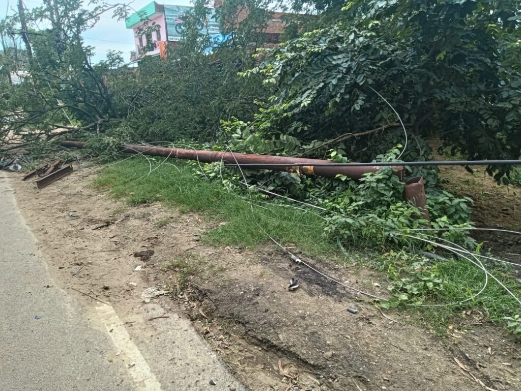बिसौली। बिसौली बिल्सी मार्ग पर खंभा टूट जाने से बिसौली के कई मोहल्लों की बिजली गुल रही। आपको बता दें, बृहस्पतिवार रात 10:00 बजे तेज आंधी से बिसौली बिल्सी मार्ग पर एक खंभा टूट गया जिससे कई मोहल्ले प्रभावित हुए जिनमें मौर्य कॉलोनी तथा बुध बाजार भी शामिल है। मौर्य कॉलोनी और बुध बाजार के लोग पूरी रात परेशान रहे। सुबह होने पर पता लगा की बिसौली बिल्सी मार्ग पर एक खंभा टूट गया है। शुक्रवार को प्रातः बिजली विभाग के लोग लोगों ने आकर देखा तथा नया खंबा लगाने का कार्य प्रारंभ कर दिया।