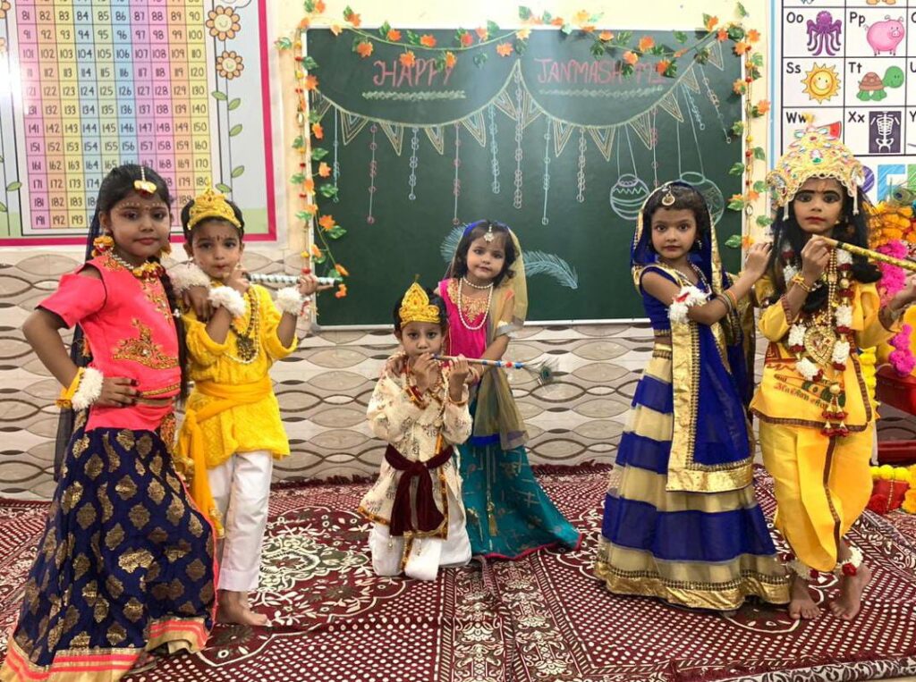 कक्षा 3rd से 5th तक के बच्चों ने कृष्ण की बाल लीलाओं से संबंधित चित्र बनाए और कक्षा 6th से 8th तक के छात्र छात्राओं की कृष्ण के जन्म से संबंधित प्रश्नोत्तर प्रतियोगिता कराई गई जिनमे कक्षा 8th की पावनी ठाकुर प्रथम, कक्षा 7th के अयन गुप्ता द्वितीय तथा कक्षा 6th की आराध्या गुप्ता तृतीय स्थान पर रही। विद्यालय की प्रधानाचार्या नीलम अग्रवाल जी ने कृष्ण जन्माष्टमी के बारे में बच्चों को अवगत कराया तथा शिक्षिकाओं का विशेष सहयोग रहा।