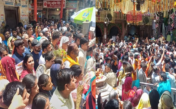 मथुरा। वृंदावन के बांके बिहारी मंदिर में जन्माष्टमी की तैयारियां जोर शोर से चल रही हैं। देश ही नहीं बल्कि विदेशों से भी लोग यहां बांके बिहारी के दर्शन करने आ रहे हैं। उधर सुबह के दर्शन के समय भारी भीड़ उमड़ी। मंदिर के आसपास की गलियों में भीड़ ही भीड़ नजर आ रही है। उत्तर प्रदेश के साथ-साथ राजस्थान छत्तीसगढ़ गुजरात समेत तमाम राज्यों के लोग यहां पहुंचे। भीड़ में कई अपने एक दूसरे से बिछड़ गए जिनको ढूंढने के लिए भी लोग मशक्कत करते रहे। दो साल पहले हुई यहां एक दुर्घटना और लगातार बढ़ रही भीड़ को देखकर बांके बिहारी मंदिर प्रबंधन ने भी लोगों से अपील की है कि वे अपने घर पर ही मानसिक रूप से बांके बिहारी के दर्शन करें। जन्माष्टमी पर ज्यादा भीड़ रहने वाली है। ऐसे में खास तौर पर बुजुर्ग एवं बच्चे बांके बिहारी मंदिर पर दर्शन के लिए न आएं। वे सभी घर पर ही जन्माष्टमी का पर्व मनाएं।उधर प्रशासन ने भी बांके बिहारी मंदिर पर व्यवस्थाएं चाक चौबंद की हैं। खास तौर पर मंगला आरती के लिए शेड्यूल दिया तैयार किया जा रहा है । अब सुबह 4:00 की बजाय 1:00 बजे ही मंगला आरती होगी। यह साल में एक ही बार जन्माष्टमी के दिन होती है। मंदिर के सेवायत श्रीनाथ गोस्वामी का कहना है कि लोगों से भी अपील की जा रही है की भीड़ के चलते बांके बिहारी मंदिर में आने की वजह जन्माष्टमी घर पर ही मनाएं और वही प्रभु के मानसिक दर्शन करें।