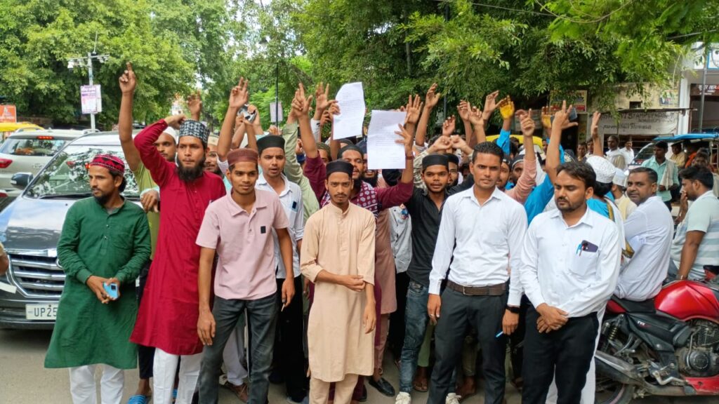 बरेली। महाराष्ट्र में मुस्लिमों के पैगंबर हजरत मोहम्मद साहब के खिलाफ अभद्र व अमर्यादित टिप्पणी करने वाले रामगिरी पर कार्यवाही करने को लेकर मुस्लिमों के संगठन अहलेसुन्नत वल जमात के कार्यकर्ताओं ने मंगलवार को महामहिम राष्ट्रपति को संबोधित ज्ञापन एसीएम प्रथम के माध्यम से सौंपा। बीते दिनों से लगातार मुस्लिमों के पैगंबर हजरत मोहम्मद साहब की शान में गुस्ताखी करने वाले रामगिरी के खिलाफ कलेक्ट्रेट गेट पर पहुंचकर अहले सुन्नत वल जमात के कार्यकर्ताओं ने जोरदार प्रदर्शन किया और रामगिरी महराज को जेल में डालो के नारे लगाए। मुस्लिम संगठन के कार्यकर्ताओं का कहना है कि महाराष्ट्र के कोल्हापुर निवासी रामगिरी महाराज ने मुसलमानों को पैगंबर हजरत मोहम्मद साहब के खिलाफ अमर यादव टिप्पणी की है इसको लेकर उन्होंने रामगढ़ी के खिलाफ कार्रवाई करने को लेकर राष्ट्रपति को संबोधित ज्ञापन अपर नगर मजिस्ट्रेट प्रथम के माध्यम से सोप और कार्रवाई की मांग की। इस दौरान पहले सुन्नत वलजमात के कार्यकर्ता मोहम्मद जीशान, मोहम्मद फैजान रजा ,मोहम्मद तारिक रजा,मोहम्मद इकराम,मोहम्मद शोएब ,मोहम्मद ओवैस ,मोहम्मद सोहेल, मोहम्मद फरहान, मोहम्मद कासिम, मोहम्मद महफूज, मोहम्मद आफताब, मोहम्मद जीशान, मोहम्मद आमिल,मोहम्मद दानिश,मोहम्मद हमीद,मोहम्मद शाहबाज, मोहम्मद शाहिद ,मोहम्मद फहीम और मोहम्मद आदिल सहित तमाम कार्यकर्ता मौजूद रहे।