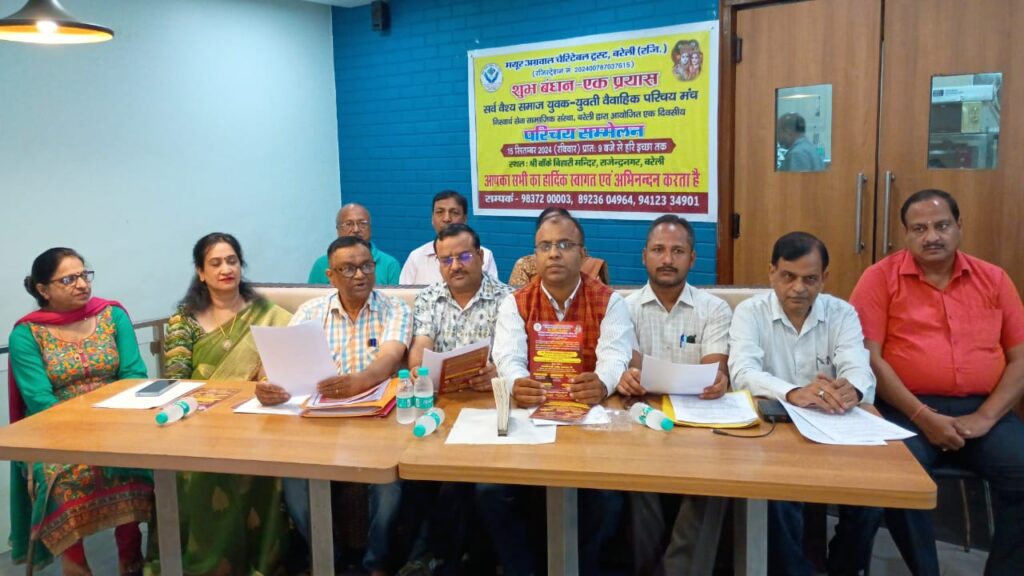 बरेली। मयूर अग्रवाल चैरिटेबल ट्रस्ट रजि. के तत्वावधान में ‘शुभ बंधन एक प्रयास” विवाह योग्य सर्व वैश्य समाज के युवक-युवतियों हेतु वैवाहिक परिचय मंच का आयोजन आगामी 15 सितंबर श्री बांके बिहारी मन्दिर में होगा।
