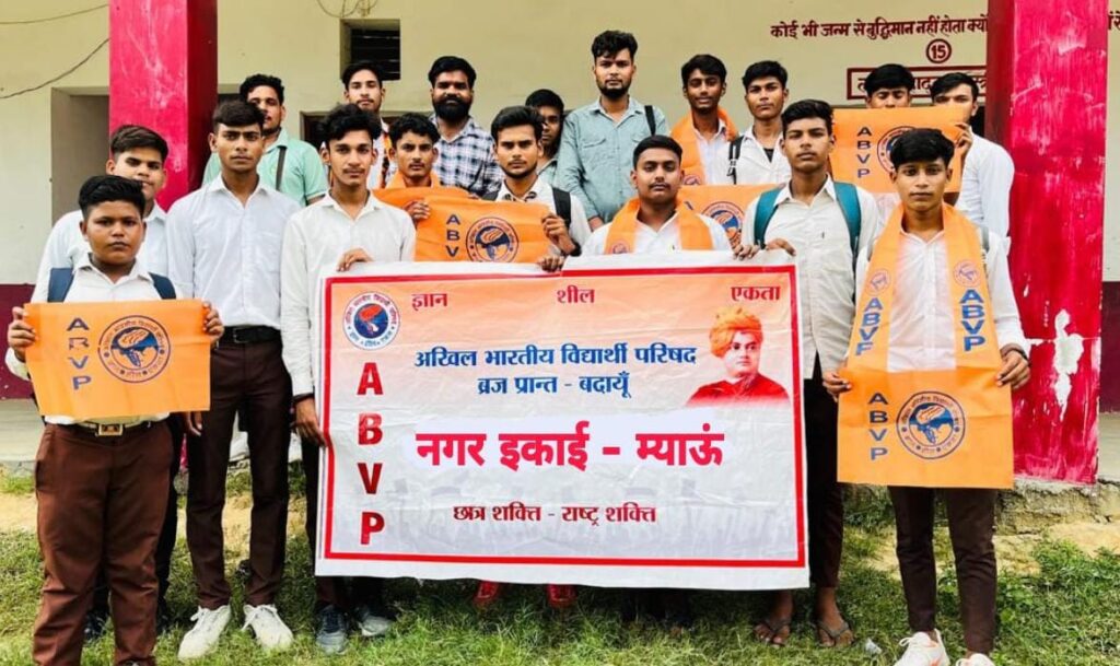 बदायूँ। आज अखिल भारतीय विद्यार्थी परिषद जिला की म्याऊं इकाई का गठन हुआ जिसमें अखिल भारतीय विद्यार्थी परिषद बदायूं के विभाग संयोजक हरिमोहन सिंह एवं जिला संयोजक धर्मेंद्र प्रताप उपस्थित रहे। इस अवसर पर विभाग संयोजक हरिमोहन सिंह ने कार्यकर्ताओं को संगठन के कार्यों पर चर्चा की एवं कहा कि विद्यार्थी परिषद विश्व का सबसे बड़ा छात्र संगठन इसलिए है क्योंकि यह सिर्फ महाविद्यालय विश्वविद्यालय में छात्र संघ चुनावो के लिए कार्य नहीं करता अपितु विद्यार्थी परिषद अन्य संगठनों से अलग हटकर वर्ष भर विभिन्न प्रकार के कार्यक्रम करके विद्यार्थियों से जुड़ा रहता है एवं विद्यार्थियों के हित में सदैव खड़ा रहता है। विद्यार्थी परिषद युवाओं के प्रेरणा स्रोत स्वामी विवेकानंद के विचारों को अपना आदर्श मान कर कार्य करता है। जिला संयोजक धर्मेंद्र प्रताप ने संगठन के कार्य पद्धति पर जोर देते हुए कहा कि हमारा संगठन अपनी कार्य पद्धति के आधार पर विश्व का सबसे बड़ा छात्र संगठन बना है और हमारे कार्य पद्धति हमें सबसे अलग संगठन के रूप में स्थापित करती है। इस अवसर पर म्याऊं इकाई की नवीन कार्यकारणी की घोषणा विभाग संयोजक हरिमोहन सिंह ने की , जिसमें नगर अध्यक्ष आशीष राघव, नगर मंत्री केशव दुवे, नगर सह मंत्री संयुक्त रूप से सुमित यादव एवम रितिक दुबे को बनाया गया। नगर सोशल मीडिया संयोजक राहुल लोधी, नगर मीडिया संयोजक उदित बघेल, एसएफडी संयोजक अरुण शाक्य, सह एसएफडी संयोजक क्षैतिज यादव, एसएफएस संयोजक करण सिंह, सह एसएफएस संयोजक हरि कृष्ण यादव, खेलो भारत आयाम के संयोजक राघव दुबे, सह संयोजक गौरव यादव, आंदोलन प्रमुख देवराज सिंह बने। नगर कार्यकारिणी सदस्य के रूप में यादवेंद्र यादव, अभिषेक यादव, घनश्याम शर्मा, गौरव राजपूत, विशाल , अभिषेक, जतिन आदि कार्यकर्ता उपस्थित रहे।