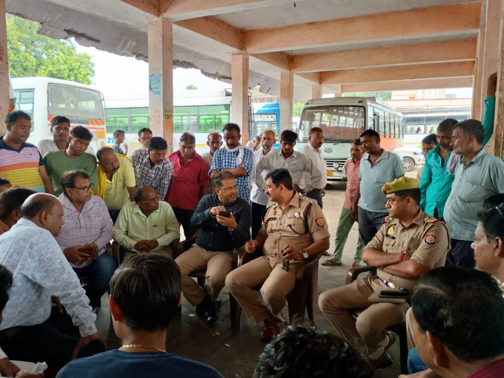 बदायूं। जिला बस ऑपरेटर्स यूनियन के पदाधिकारी एवं बस मालिकान पुलिस लाइन स्थित प्राइवेट बस स्टैंड पर यूनियन अध्यक्ष ओमकार सिंह के नेतृत्व में समस्त बसों को सरेंडर करने हेतु जाने से पहले ही क्षेत्राधिकारी संजीव कुमार, एआरटीओ प्रशासन रामवचन गुप्ता, एआरटीओ प्रवर्तन अम्बरीष कुमार, एसएचओ सिविल लाइंस संजय कुमार एव टीएसआई प्राइवेट बस स्टैंड पर पहुँच कर उपस्थित बस मालिकान व स्टाफ से वार्ता की इस अवसर पर यूनियन अध्यक्ष ओमकार सिंह ने बताया हमारी बसें विगत कई वर्षों से प्राइवेट बस स्टैंड से वैध प्रपत्रों पर समस्त टैक्स व पार्किंग फीस अदा करके संचालित होती है एवम प्रशासन द्वारा टैम्पों के भी स्टैंड बनाये गए है जिसमे उसावां, उसहैत, ककराला जाने वालों का स्टैंड मंडी समिति पर बनाया गया है।, कादरचौक, उझानी, बिल्सी जाने वालों का स्टैंड बड़े सरकार की दरगाह के पुल से पहले बनाया गया है।