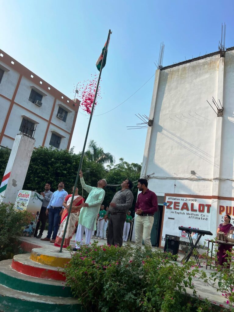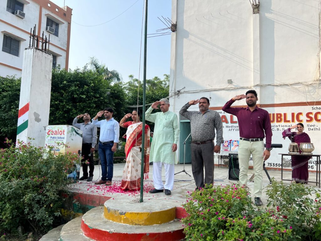 बदायूँ। जीलाॅट पब्लिक स्कूल मे गाॅधी औऱ शास्त्री जयन्ती बड़ी धूमधाम से मनाई गई। ध्वजारोहण विद्यालय संस्थापक महेन्द्र सिंह ने किया। नन्हंे-मुन्नें बच्चे गाॅधी जी एवं कस्तूरबा जी की वेशभूषा में अत्यन्त मनमोहक लग रहे थे।