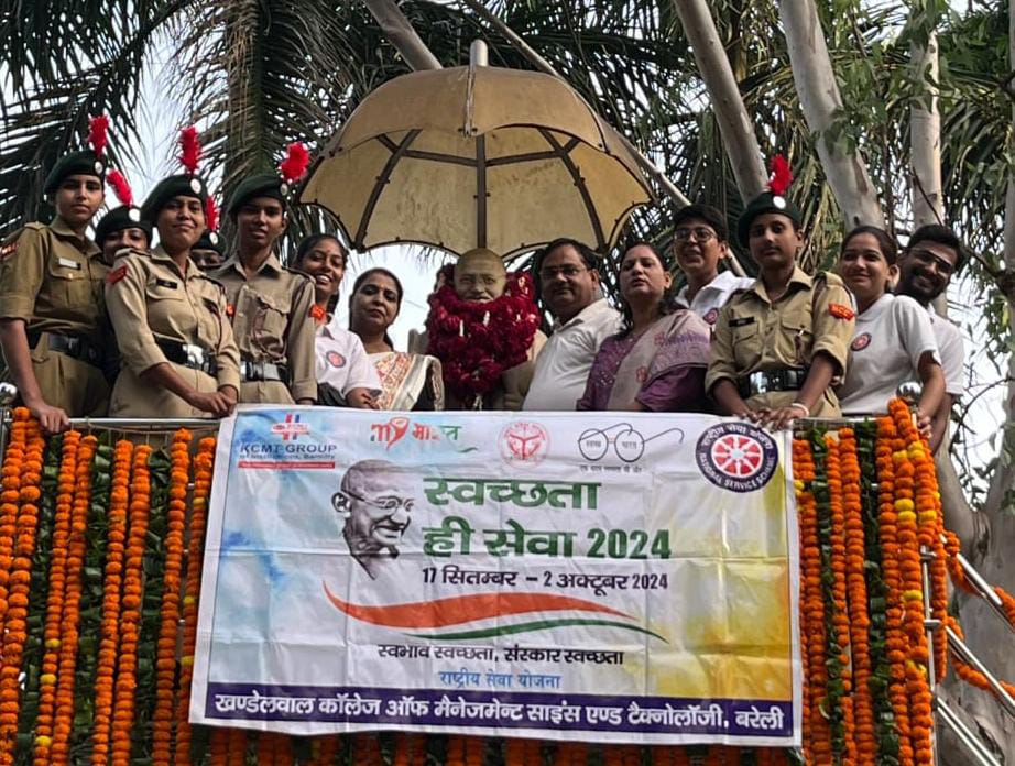 बरेली। राष्ट्रपिता महात्मा गांधी की 155वीं जयंती पर आदरणीय प्रधानमंत्री श्री नरेन्द्र मोदी जी के ‘ कचरा मुक्त भारत’ की परिकल्पना एवं स्वभाव स्वच्छता , संस्कार स्वच्छता को साकार रूप देने हेतु खंडेलवाल कॉलेज बरेली के एनसीसी कैडेट्स व एनएसएस स्वमसेवियो द्वारा चौकी चौराहे स्थित गांधी जी की प्रतिमा पर माल्यार्पण कर एवं आस पास के स्थानों की साफ सफाई कर स्वच्छ्ता श्रमदान में प्रतिभाग किया गया। विद्यार्थियों द्वारा हस्तनिर्मित पेपर के बैग बनाकर लीगो को वितरित कर उनसे प्लास्टिक का उपयोग न करने की अपील की गई।व सिंगल यूज प्लास्टिक के विकल्पों के बारे में सुझाव देते हुए आम-जनमानस को जागरूक कर गांधी जी को स्वच्छांजलि अर्पित की।इस अवसर पर महाविद्यालय के महानिदेशक डॉ अमरेश कुमार व प्राचार्य डॉ आर के सिंह जी ने विद्यार्थियों का उत्साहवर्धन करते हुए कहा कि श्रमदान हम सभी का नागरिक कर्तव्य है। हमारा प्रदेश स्वच्छ हो, हम सभी स्वस्थ रहें,इसके लिए हमें स्वच्छता को अपनी आदत बनानी होगी। समस्त कार्यक्रम हवलदार जयप्रकाश साहू, एनएसएस अधिकारी सविता सक्सेना, एनसीसी अधिकारी ले रचना के निर्देशन में हुआ।