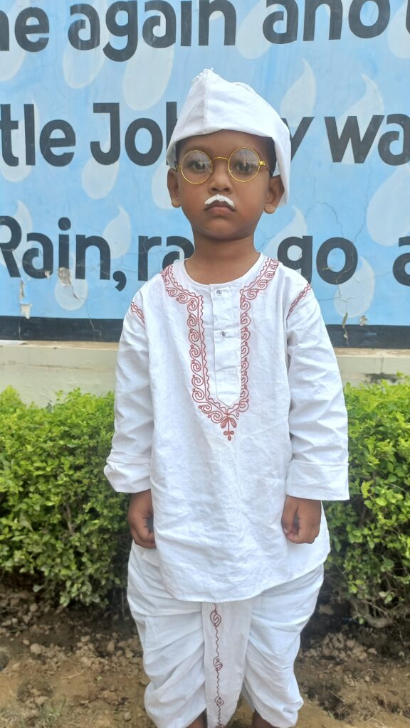 बच्चों ने अनेक कार्यक्रम प्रस्तुत किए गए ।बच्चे गांधी जी की वेशभूषा में स्कूल आये और विभिन्न कार्यक्रम पेश करके सभी का मन मोह लिया। इस मौके पर समस्त स्टाफ मौजूद रहा।