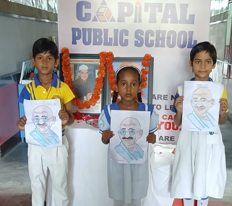 बदायूँ। कैपिटल पब्लिक स्कूल में राष्ट्रपिता महात्मा गाँधी औऱ पूर्व प्रधानमंत्री लाल बहादुर शास्त्री की जयंती मनाई गयी। भारत के लिए ०२ अक्टूबर का दिन काफी महत्वपूर्ण है इस दिन महात्मा गाँधी की जयन्ती के अलावा लाल बहादुर शास्त्री की भी जयन्ती मनायी जाती है ।भारत के प्रतिष्ठित राष्ट्रीय नेता महात्मा गाँधी का जन्म ०२ अक्टूबर १८६९ को पोरबन्दर गुजरात में हुआ था। यह दिन हर साल महात्मा गाँधी जी के सम्मान में पूरे भारत में गाँधी जयन्ती के रूप में मनाया जाता है ताकि भारतीय स्वतंत्रता आन्दोलन में उनके अद्वितीय योगदान को याद कर सकें। साथ ही यह दिन गाँधी जयन्ती के साथ साथ देश के दूसरे प्रधानमंत्री लाल बहादुर शास्त्री जी की जयन्ती के भी रूप में मनाते हैं जिनका जन्म ०२ अक्टूबर १९०४ में उत्तर प्रदेश के मुगलसराय में हुआ। इस अवसर पर ध्वाजारोहण के उपरान्त बच्चों और शिक्षिक व शिक्षिकाओं ने महात्मा गाँधी जी और लाल बहादुर शास्त्री जी के चित्र पर पुष्प अर्पित किए कुछ नन्हें मुन्नें छात्र महात्मा गाँधी और लाल बहादुर शास्त्री की वेशभूषा में आए कक्षा ६ से ८ तक के बच्चों ने जल, जीवन, स्वच्छता एवं हरियाली से जुडे नारे एवं स्लोगन बोलें।