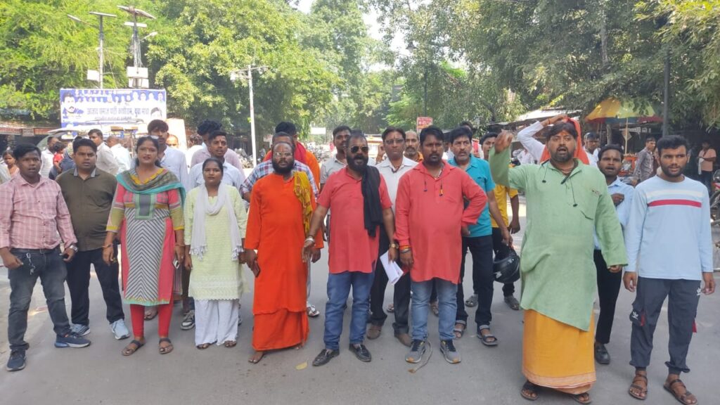बरेली। उर्स सकलैनी के विरोध में आजाद हिंदू सेना के राष्ट्रीय प्रमुख अमित राठौर के नेतृत्व में सेठ दामोदर स्वरूप पार्क में इकट्ठे होकर प्रदर्शन करते हुए जिला अधिकारी कार्यालय पहुंचे और जिलाधिकारी को संबोधित सिटी मजिस्ट्रेट को ज्ञापन दिया। आजाद हिंदू सेना राष्ट्रीय प्रमुख अमित राठौर ने बताया कि बरेली शहर में विभिन्न स्थानों पर पहला उर्स सकलैनी मुबारक के पोस्टर लगे हैं जिसमें उर्स की तिथि 9 अक्टूबर दर्शाई गई है । शहर में नई परंपरा है और शहर का माहौल खराब करने के लिए इस प्रकार के कार्यक्रम का आयोजन किया जा रहा है जिसका आजाद हिंदू सेना कड़ा विरोध करती है अगर नई परंपरा डाली गई तो आजाद हिंद सेना बड़ा आंदोलन करेगी। प्रदर्शन के दौरान अमित शर्मा , रवि शंकर , मयंक जौहरी , गौतम कश्यप , बाबा लहरी, अश्वनी सक्सेना, छोटू यादव,अमन , किशोर , विशाल बाला , पंकज आदि मौजूद रहे।