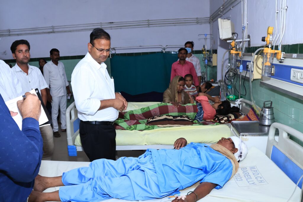 बरेली। जिलाधिकारी रविन्द्र कुमार ने आज जनपद बरेली की तहसील आंवला के थाना सिरौली के अंतर्गत ग्राम कल्याणपुर हैबतपुर में हुई घटना में घायल हुए लोगो का जिला अस्पताल पहुंचकर हाल-चाल लिया। जिलाधिकारी अस्पताल पहुंचकर घायलों के परिजनों से मिले तथा मुख्य चिकित्सा अधिकारी को निर्देश दिये कि घायलों को बेहतर इलाज की उचित व्यवस्था सुनिश्चित की जाये। नियमानुसार अन्य सुविधाएं प्रदत्त किए जाने के संबंध में भी आवश्यक दिशा निर्देश दिये। इस अवसर पर मुख्य चिकित्साधिकारी डॉ विश्राम सिंह सहित अस्पताल के डाक्टर्स उपस्थित रहे।