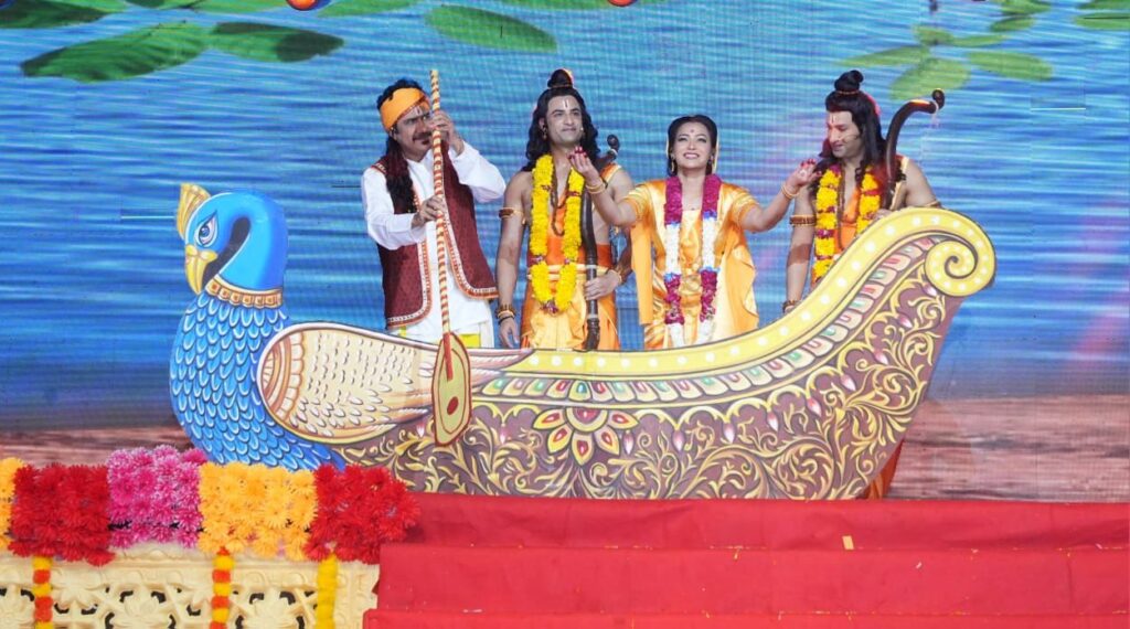 दिल्ली। दिल्ली के ऐतिहासिक लालकिले के मैदान में विश्व प्रसिद्ध लव-कुश रामलीला का आज पांचवा दिन है, रामलीला में दिन-प्रतिदिन दर्शकों की भारी भीड़ उमड़ रही है। आज की अद्भुत लीला के बारे में लव कुश रामलीला कमेटी के अध्यक्ष अर्जुन कुमार ने बताया कि रामलीला के मंच पर बालीवुड स्टार, प्रसिद्ध सिंगर शंकर साहनी ने आज केवट का अभिनय करते हुए श्रीराम को नईया पार करवाते हुए अपना लिखा भजन गाया। गायक शंकर साहनी ने “चीटी के घर आज भगवान आ गये है, मेरी छोटी सी नईया में श्रीराम आ गये है”, गीत को ऐसे मधुर, मनमोहक अंदाज में गाया लीला ग्राउण्ड में बैठे रामभक्त भक्ति भाव से ओत-प्रोत होकर के झूम उठे, उन्होंने जम करके तालियां बजाई और जय श्रीराम जय श्रीराम का उद्घोष किया।