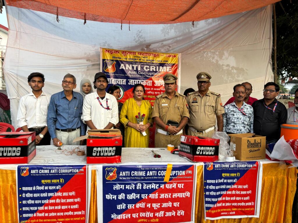बरेली । राष्ट्रीय स्तर का सामाजिक संगठन एंटी क्राइम एंटी करप्शन ट्रस्ट जनपद बरेली के राष्ट्रीय कार्यकारी अध्यक्ष विजय बहादुर सक्सेना के आह्वान पर तथा यातायात एसपी ट्रैफिक अकमल खान के निर्देशन में सड़क सुरक्षा पखवाड़ा 2024 के अंतर्गत यातायात जागरूकता अभियान इज्जत नगर स्टेशन के पास मिनी बाईपास पर चलाया गया जिसमें मुख्य अतिथि टी आई विपिन कुमार राघव ने वाहनों के पीछे रिफ्लेक्टर लगाकर अभियान की शुरुआत की । इस कार्यक्रम में हेलमेट की महत्वत्ता के बारे में आम जनमानस को जागरूक किया गया