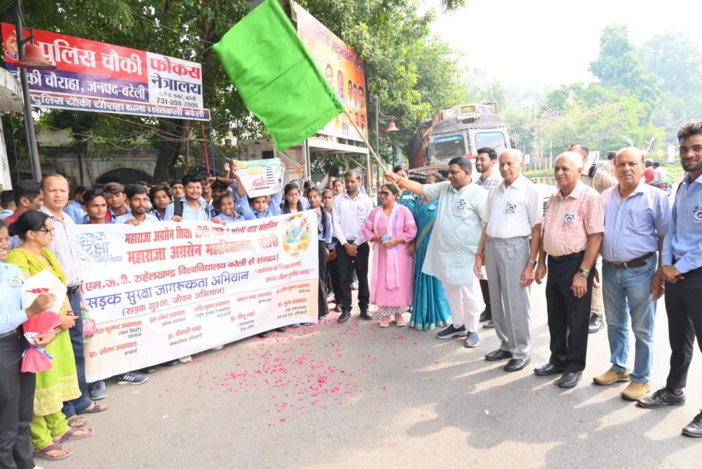बरेली। महाराजा अग्रसेन महाविद्यालय के द्वारा चौकी चौराहे से कोतवाली तक ‘सड़क सुरक्षा जागरूक अभियान रैली’ का मुख्य अतिथि कैंट विधायक प्रदेश सहकोषाध्यक्ष संजीव अग्रवाल ने हरी झंडी दिखाकर रैली का शुभारंभ किया। इस अवसर पर कैंट विधायक प्रदेश सहकोषाध्यक्ष संजीव अग्रवाल ने सड़क सुरक्षा जागरूक अभियान के बिषय में विस्तार से सभी को वताया। उन्हें कहा कि घर पर हमारे माता पिता परिवारिक जन हमारी प्रतिक्षाकर रहे होते हैं इसलिए हमें सड़क पर चलते समय सावधानी वरतनी चाहिए और यातायात के नियमों का पालन भी करना चाहिए। इससे पहले कैंट विधायक संजीव अग्रवाल के कार्यक्रम में पहुंचते ही अग्रसेन महाविद्यालय प्रबंधन समिति ने पुष्प गुच्छ भेंटकर स्वागत अभिनंदन किया।