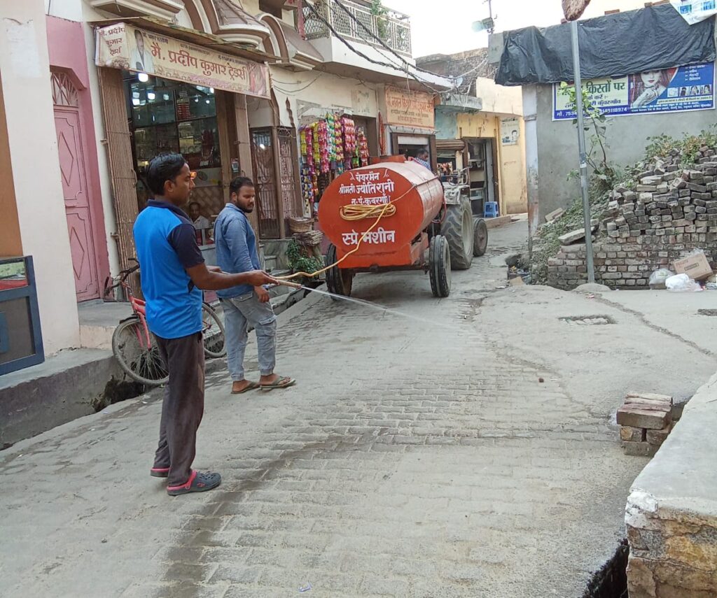 कुंवरगांव। कस्बे में मच्छरों के बढ़ रहे प्रकोप को देखते हुए नगर पंचायत टीम द्वारा मंगलवार को नगर के कई मोहल्ले एवं गलियों में फागिंग और नालियों में एंटी लारवा का छिड़काव करवाया गया,नाले-नालियों के ऊपर दिन भर मच्छर भिनभिनाते दिखते रहते हैं। शाम को घरों में लोगों को परेशान करते हैं। इसी क्रम में आज नगर पंचायत कुंवर गांव में एंटी लारवा का छिड़काव किया एवं फागिंग की गई जिससे कि लोगों को कुछ राहत मिल सके,शाम को भी कस्बा के विभिन्न मोहल्लों में फागिग भी कराई गई है।बढ़ते संचारी रोग को देखते हुए नगर पंचायत द्वारा आगे भी विशेष अभियान के तहत सफाई अभियान चलाया जाएगा। वहीं नगर पंचायत टीम ने लोगों को भी साफ-सफाई के प्रति जागरूक किया।इस दौरान नगर पंचायत के सभी कर्मचारी मौजूद रहे। अनुज रस्तोगी